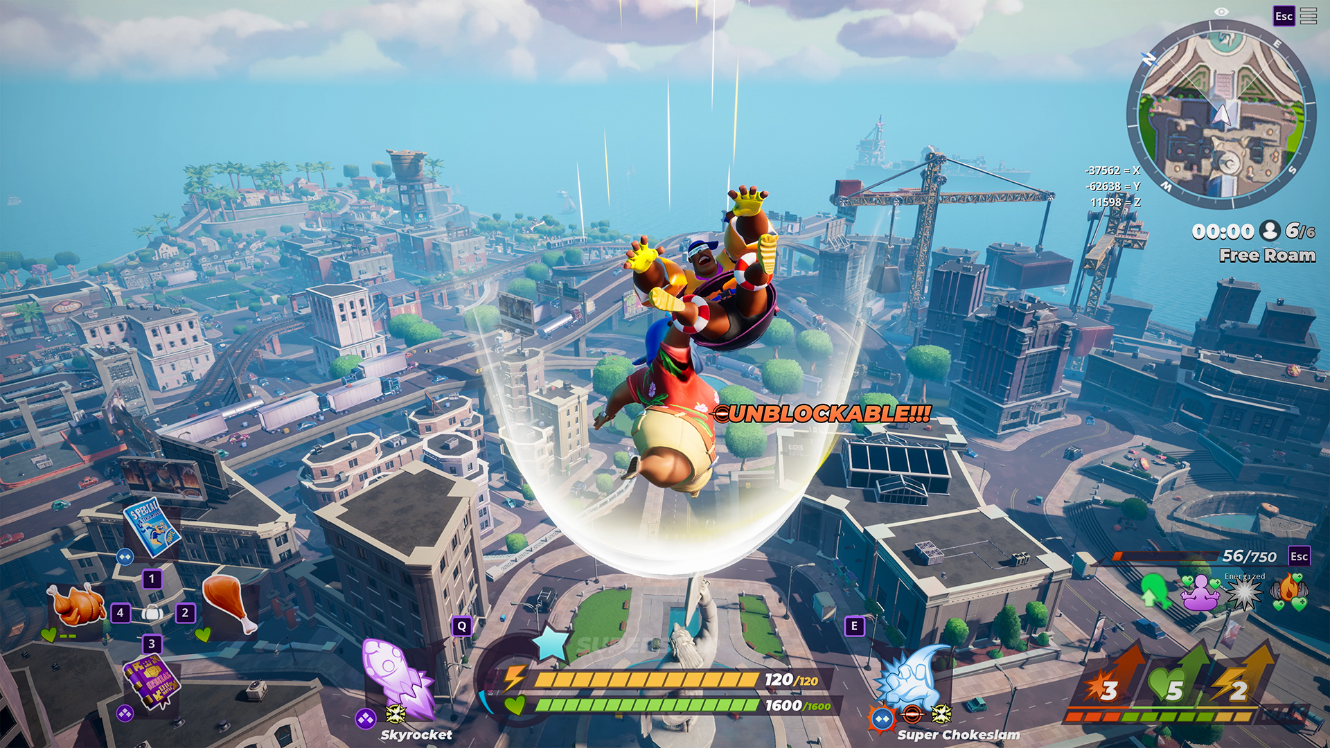 It’s that borderline after-school-cartoon style of wrestling, with colourful characters and wacky hijinx, that is expressed in the Rumbleverse world and characters. “Definitely a goal of ours is to make it fun and accessible. The art style is kinda cartoony – it’s colourful. We harken back to characters, things squash a little, it’s a little exaggerated. It’s not realistic and it’s meant to be funny, to harken back to the early cartoon days and that fun that was ever present back then. Things like bouncing on cars and scurrying up the side of buildings all play into that over the top silliness.”