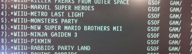 GoNintendo received a couple of off-screen images of the alleged database from a tipster, showing 25 Wii U games as well as two hardware entries.