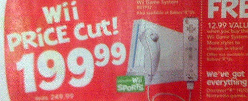 Kotaku's carrying a supposed shot of a Toys 'R' Us ad listing Wii at $199.