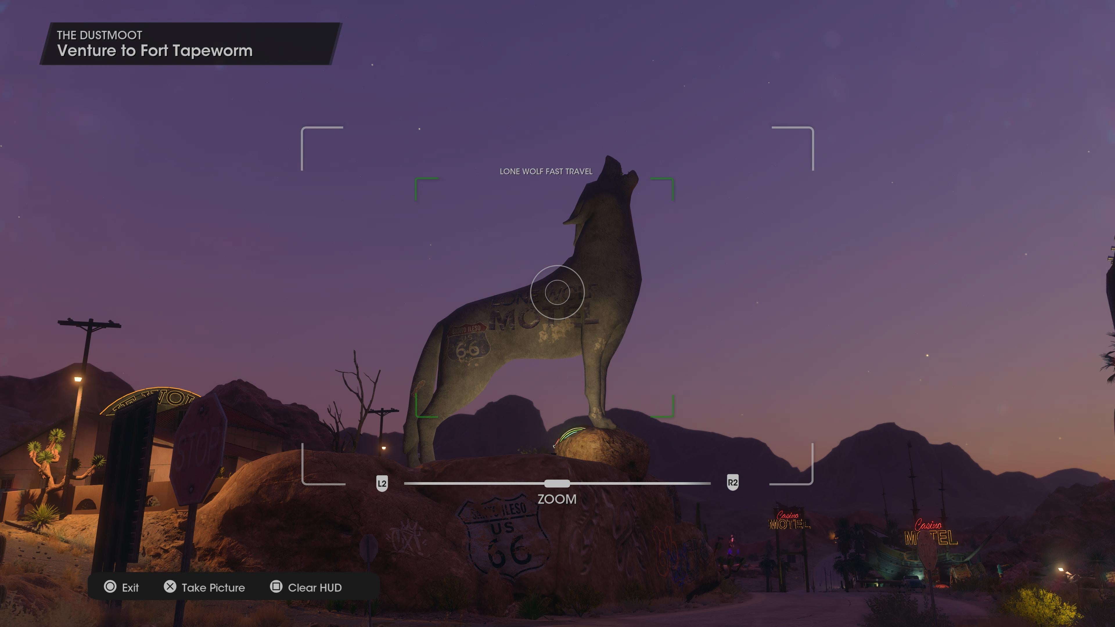 Far in the southwest of the map, the Lone Wolf Fast Travel point is found next to the Starmadillo motel and clothes shop.