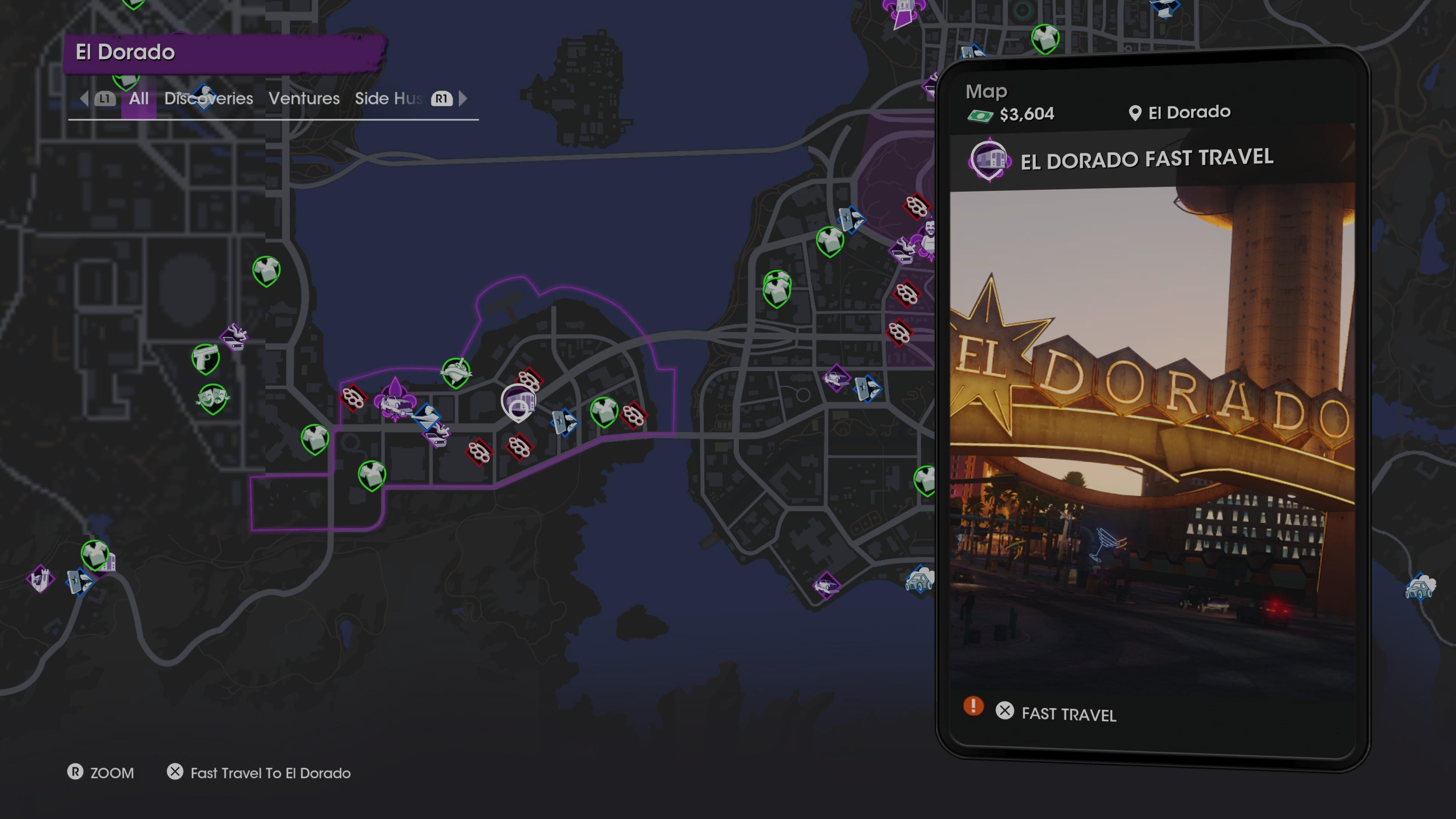 In Saints Row, fast travel points are marked on the map like any other activity. To uncover them, you have to zoom past them in your car or on foot to find their location.