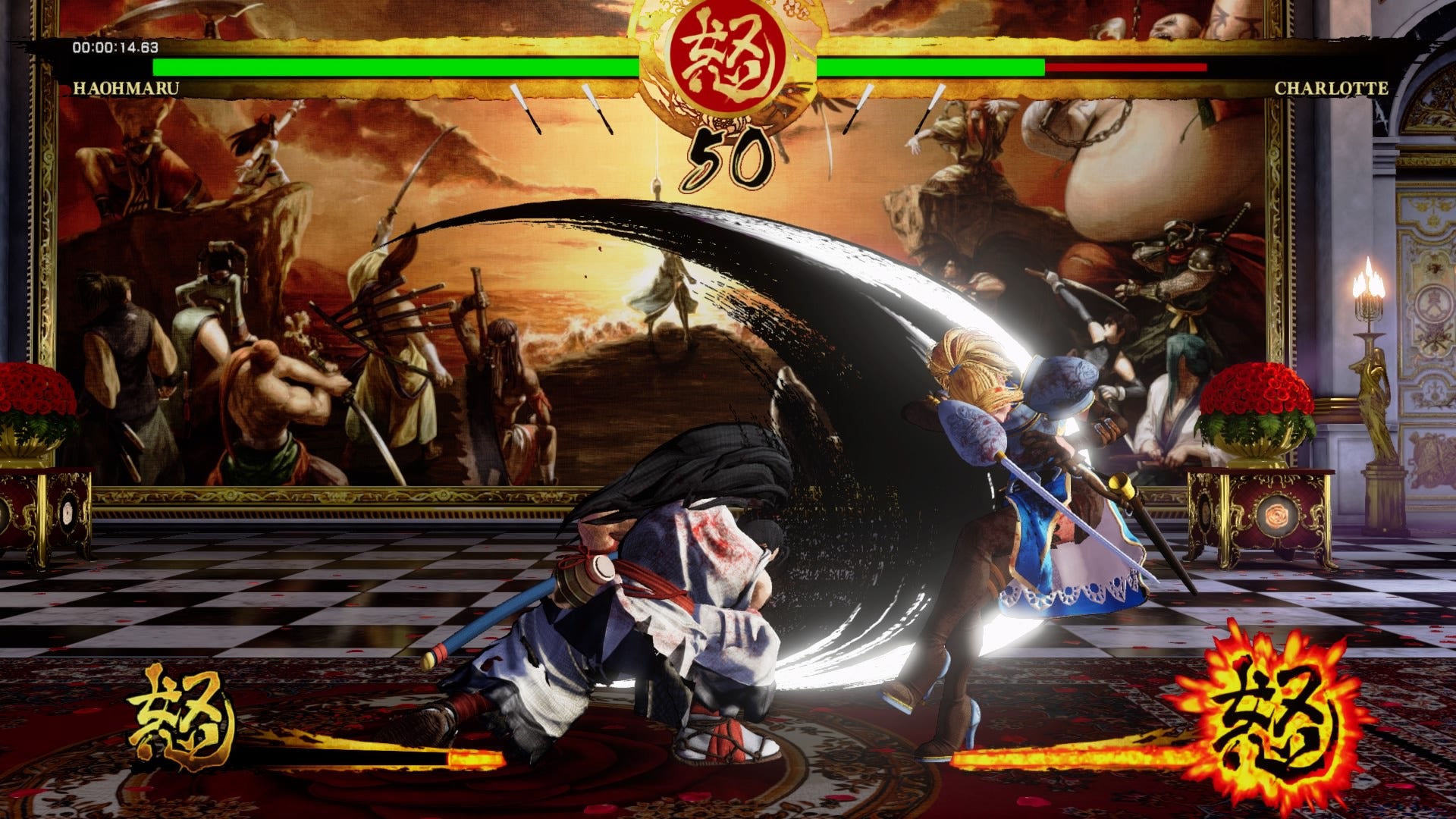 If that's something you're looking for though, Samurai Shodown delivers an experience that feels unique in the realm of fighting games. The dance back and forth, especially when fighters are at low health, feels tense. You have to fight the urge to just spam moves, instead carefully watching and biding time, hunting for an opening. There aren't too many combo strings to memorize; rather, it's about getting into the mind of your opponent and playing the neutral game well.