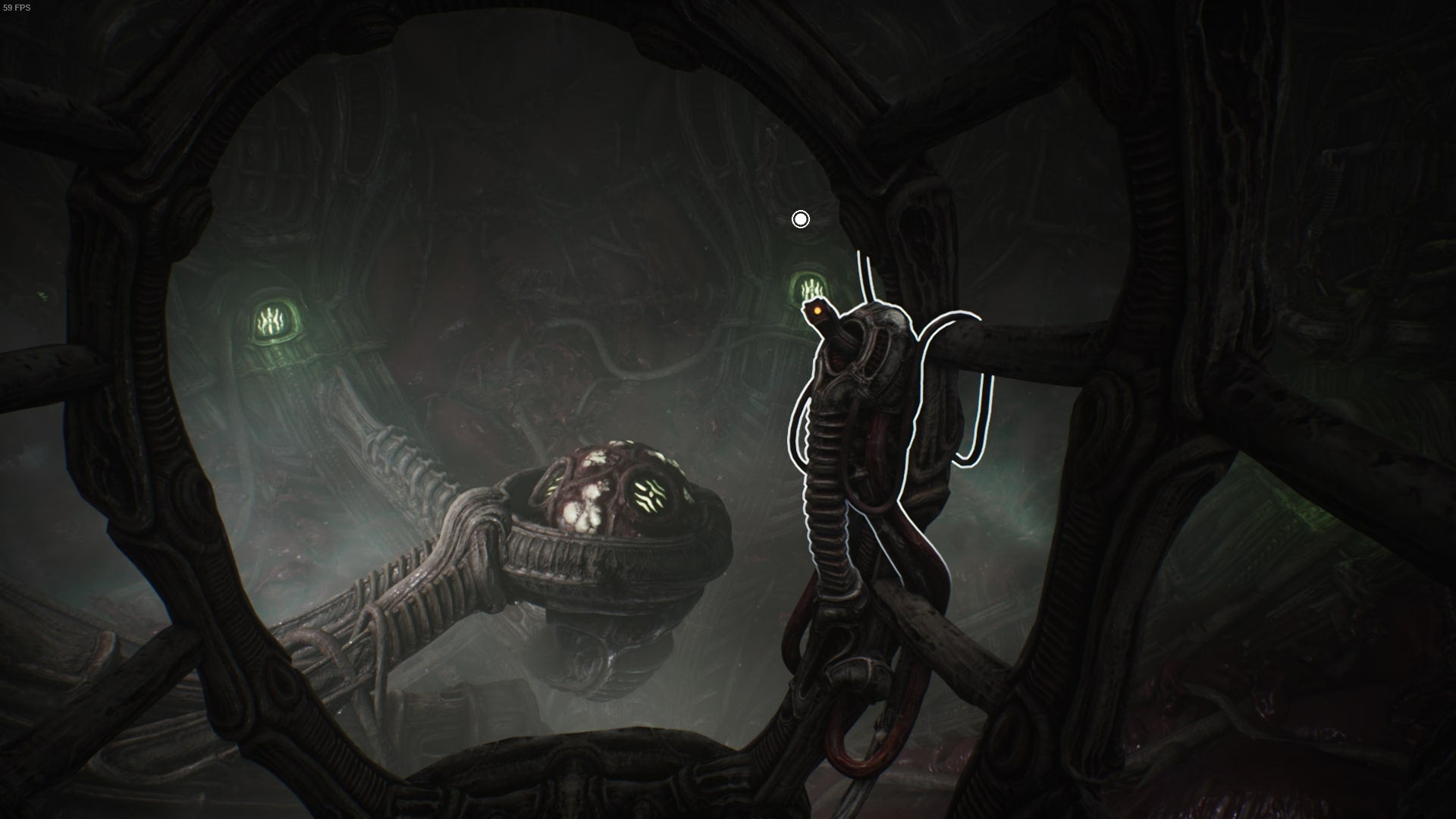 Head into the following tunnel, and you’ll catch a glimpse of your Facehugger friend from earlier. Take a right, and you’ll eventually come out by a weird contraption that looks like a button. Interact with it, and you’ll see that there are three paths you can essentially take from here; take the leftmost route and traverse along the tunnel again.