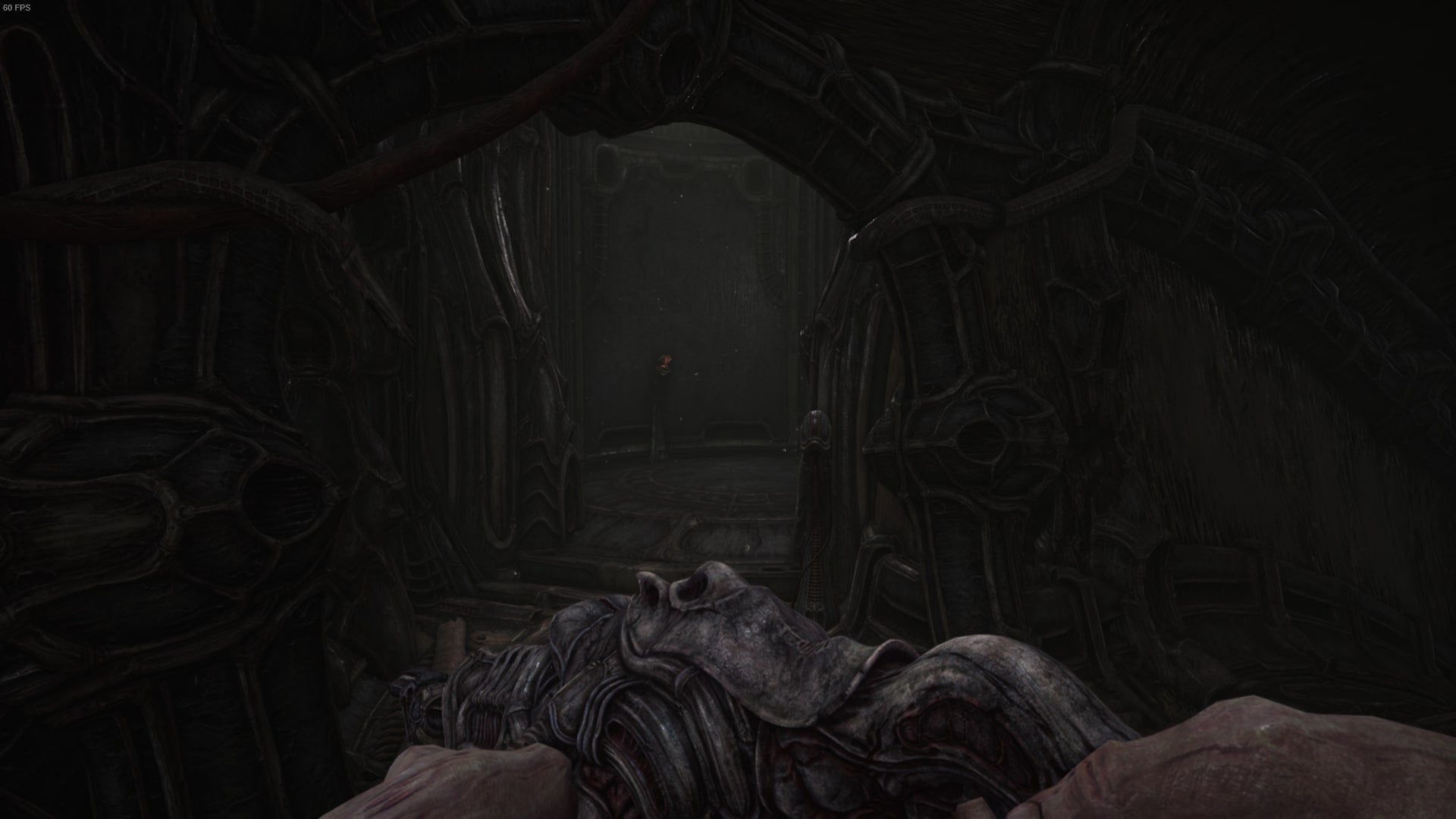 When the elevator spits you out at the next room, you’ll find a phallic pillar that you can shove your arm into, much like the one from the prologue. Do this, and then interact with the other pillar at the end of the room using your weapon.
