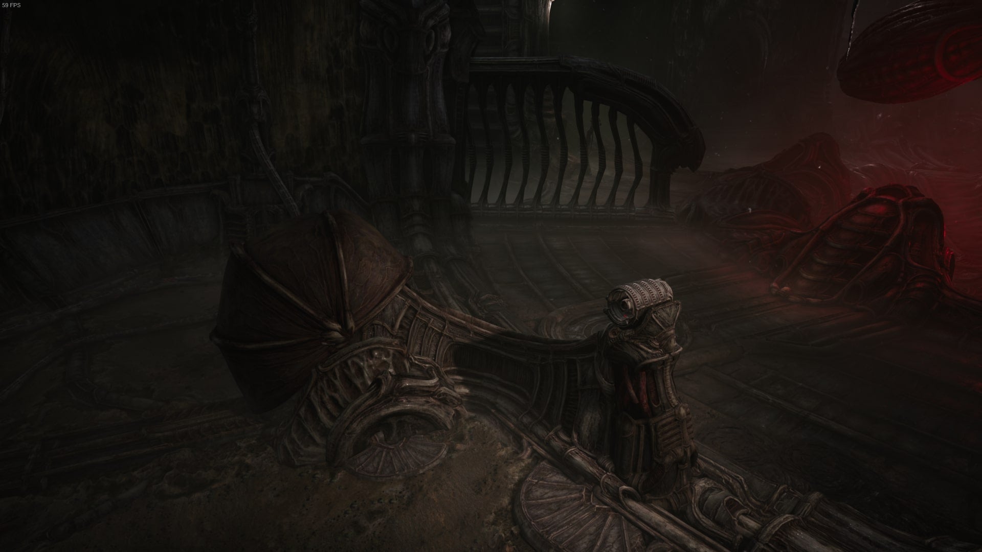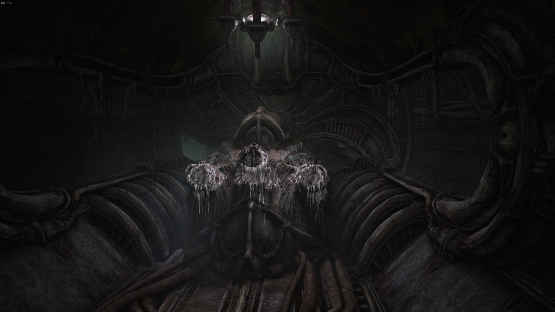Take a right, which will send you through yet another tunnel, and up to another door you can unlock. You will then end up in a very grandiose lift shaft. Interact with the pillar here to descend. This marks the end of Act 2 of Scorn.