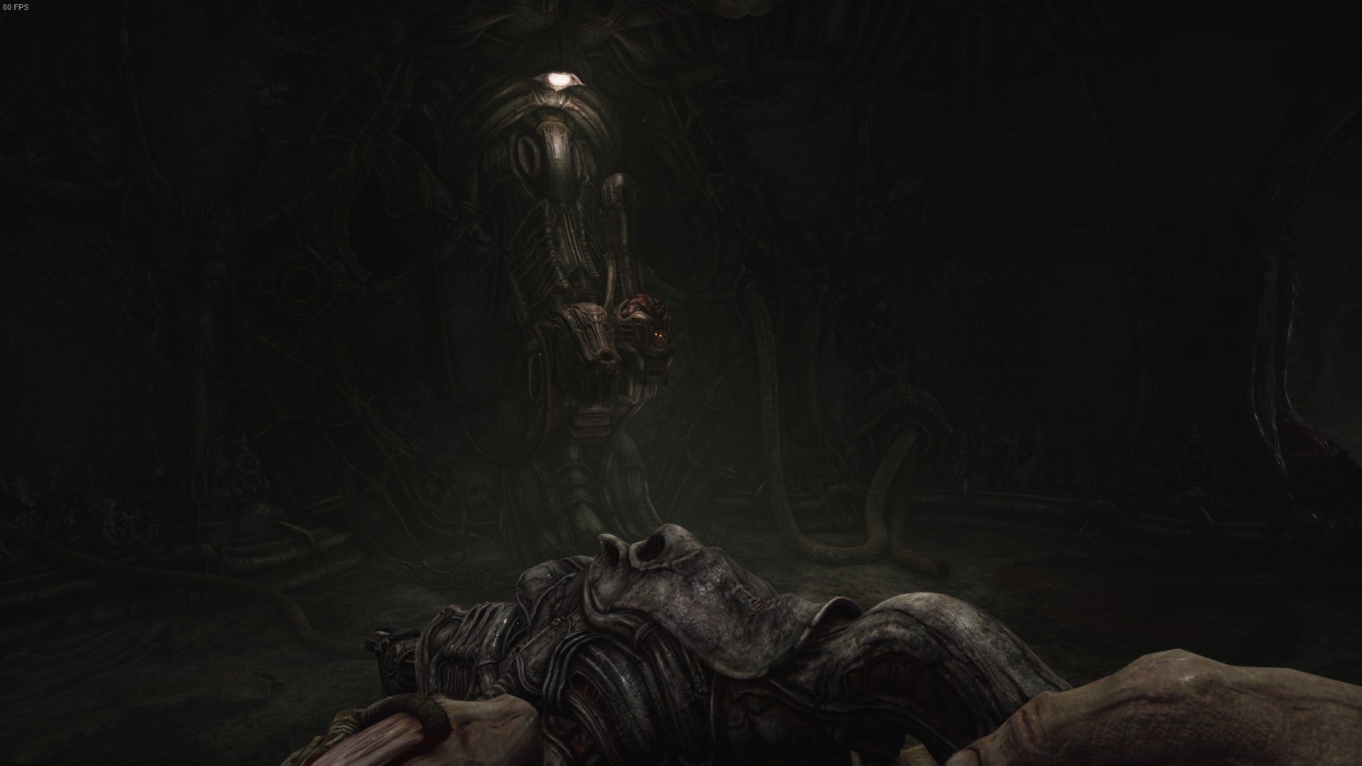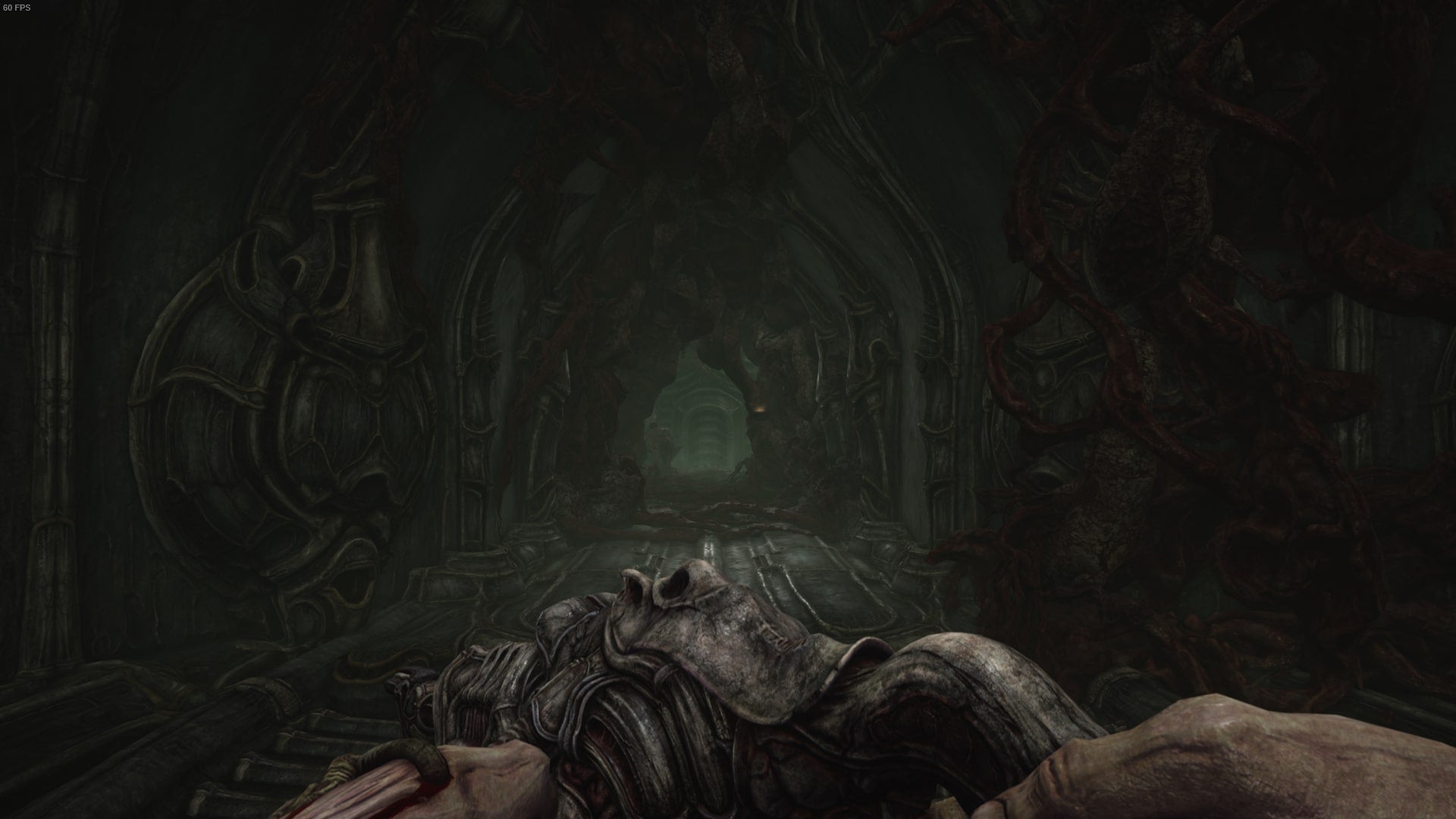 Scorn is a feast for the eyes, but will also quite easily make your stomach turn on a bad day. Inspired by the art of H. R. Giger and Zdzisław Beksiński, the environment that you find yourself skulking around is incredibly graphic and visceral; it feels alive, even.