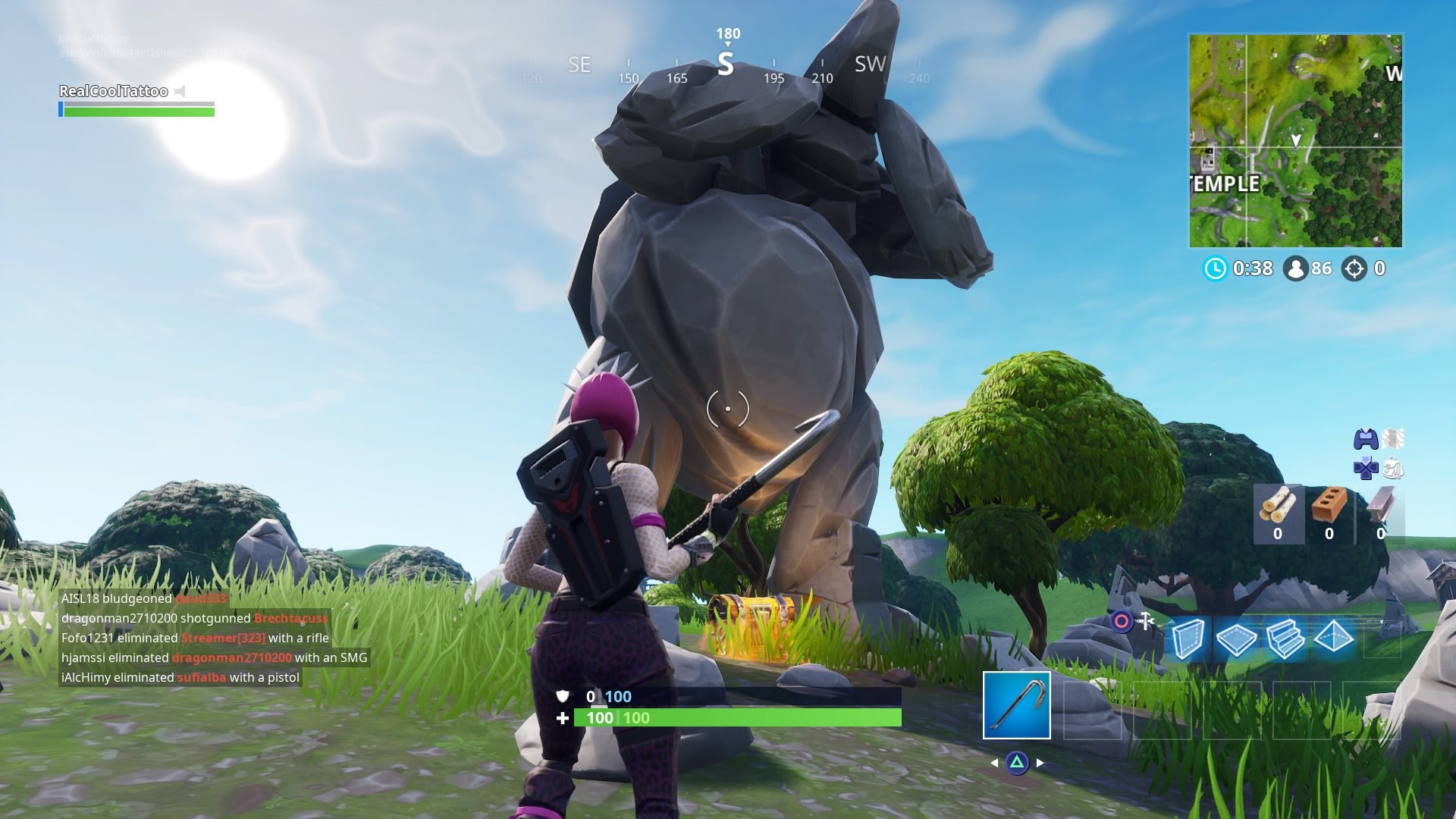 Fortnite: Search between a Giant Rock Man, a Crowned Tomato, and an Encircled Tree