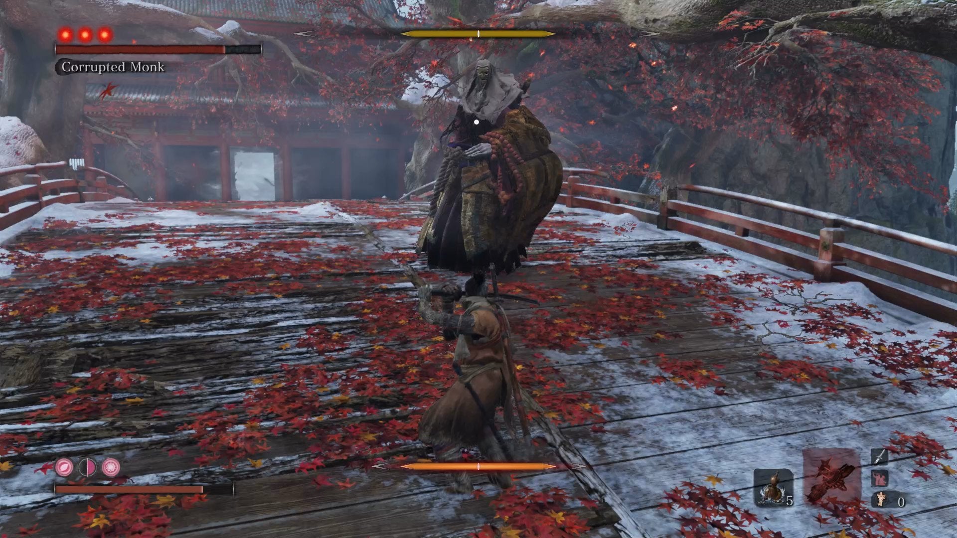 There's a reason the Corrupted Monk was the main boss of the Gamescom demo from 2018. It's undoubtedly one of the more difficult bosses in the entirety of Sekiro, especially when there are three full meters of health to get rid of.