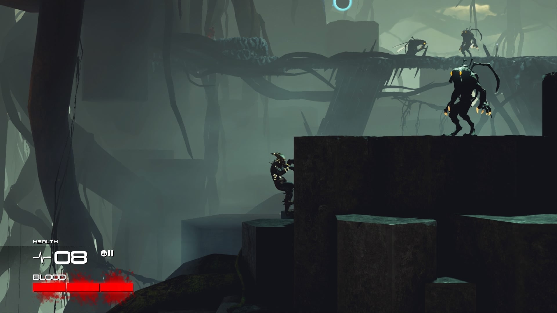 Along with a block move, you have a counter, stun, roll, grab and throw maneuver, and a limited-use rage attack. Like blocking, the timing of each move is critical, and it takes a while to learn the ins and outs of when to use each move, and where. However, once you’re up to speed on Aarbron's various abilities, fights become quite tense and interesting. Oftentimes, enemies attack in swarms called encounters, and your score during these is ranked. As you kill enemies, depending on which moves you use, you advance your score multiplier. In other words, the more style and finesse you display during an encounter, the more points you score, and the higher your rank when the encounter is tallied.