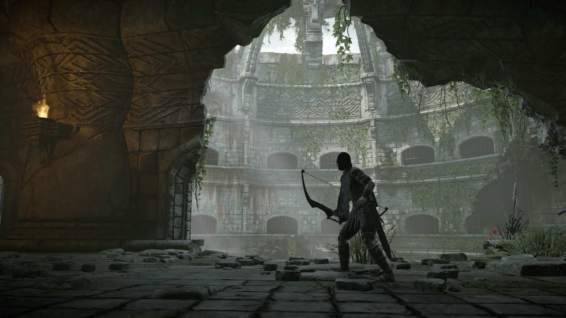 Now head through the corridors, climbing a few obstacles where necessary to arrive in a big circular colosseum. You'll see the Colossus at the bottom of the chamber.