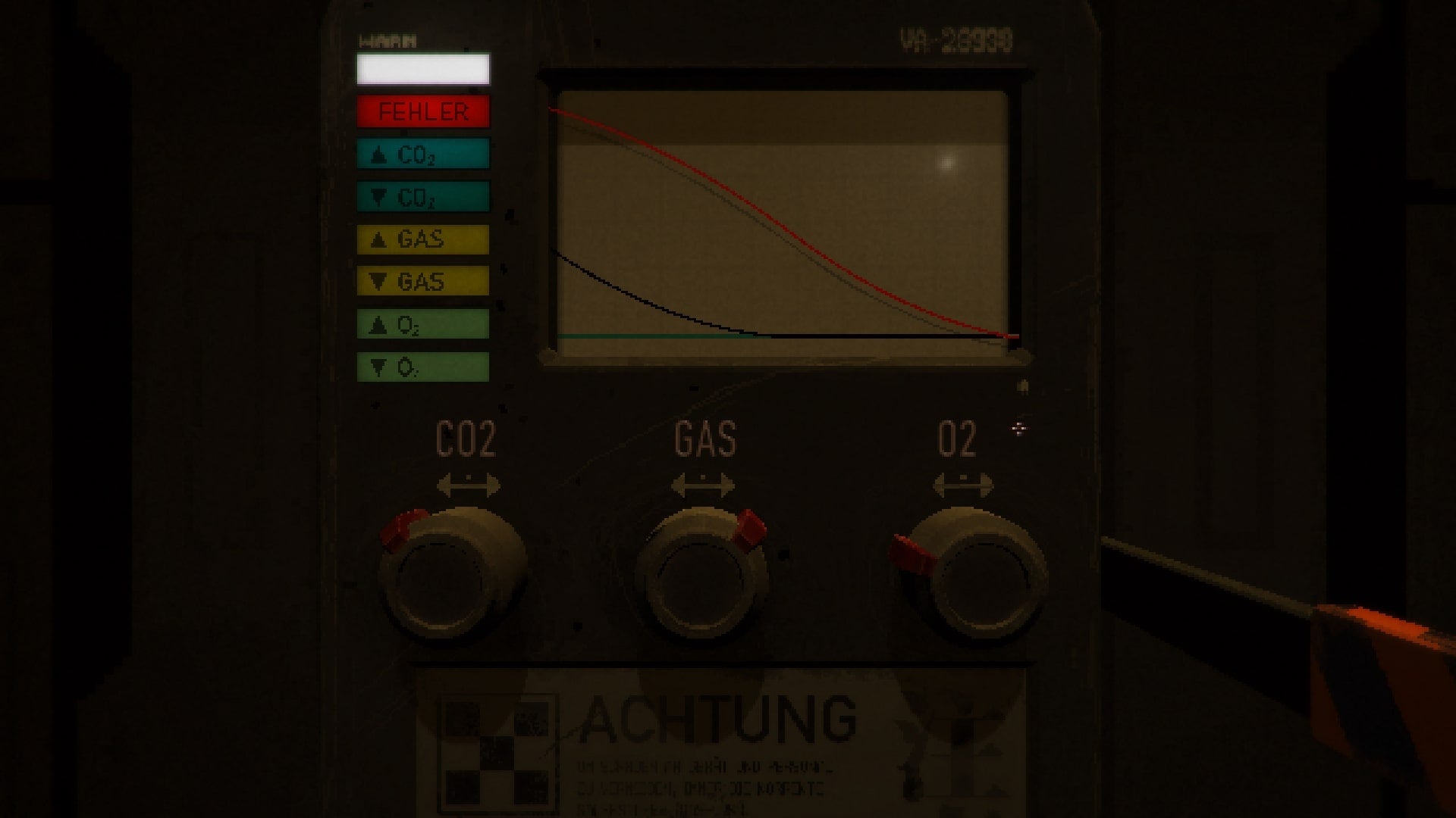 Head on over to the Incinerator Room using the new key, and you’ll encounter the Incinerator Room puzzle here. Essentially, you need to set the correct levels of CO2, Gas, and O2, for the incinerator to open. You can easily do this with a little trial and error, and the lights to the left of the machine will tell you each time which component we need more or less of.