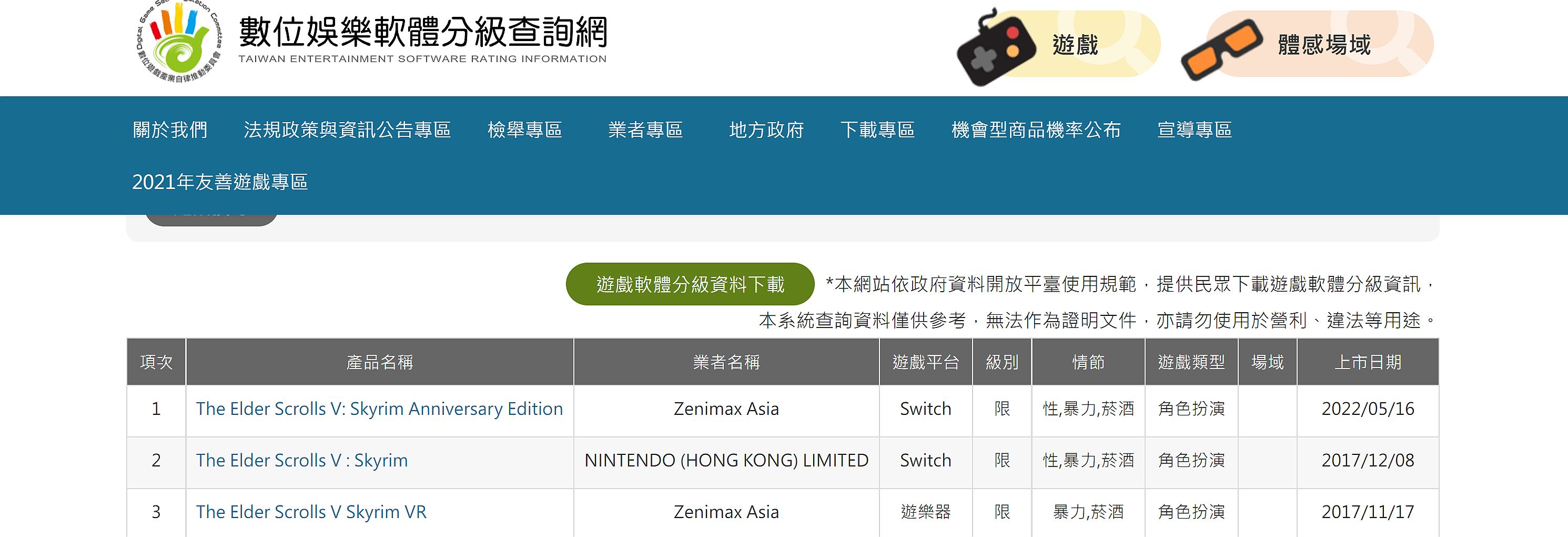 Looks like Switch users may finally get their hands on Skyrim Anniversary Edition if a listing from the Taiwan Digital Game Rating Committee is any indication.