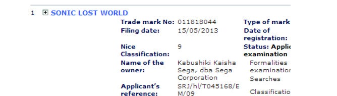 Sonic the Hedgehog rumours continue to roll on, and this time it appears Sega has trademarked something called 'Sonic Lost World'.
