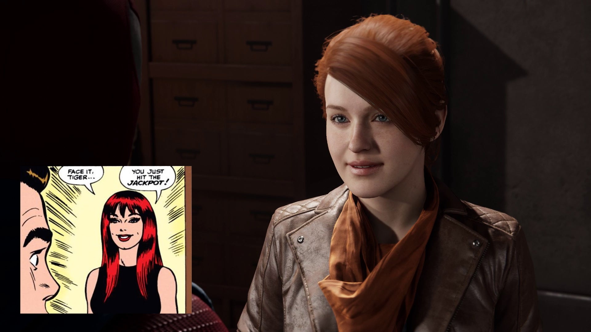 The video game counterpart of Mary Jane seems to take from her Ultimate Comics version, who eventually decided to become a journalist. She's an investigative journalist who has been working for the Daily Bugle. She and Peter have a romantic history, but at the beginning of the game, both have gone their separate ways.