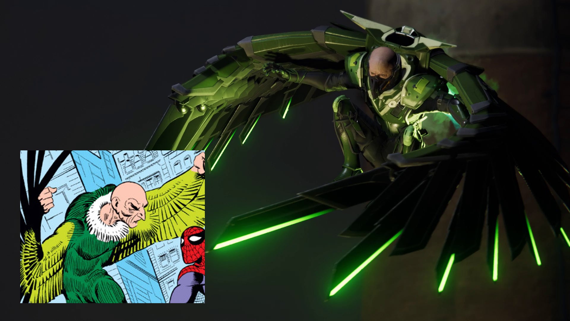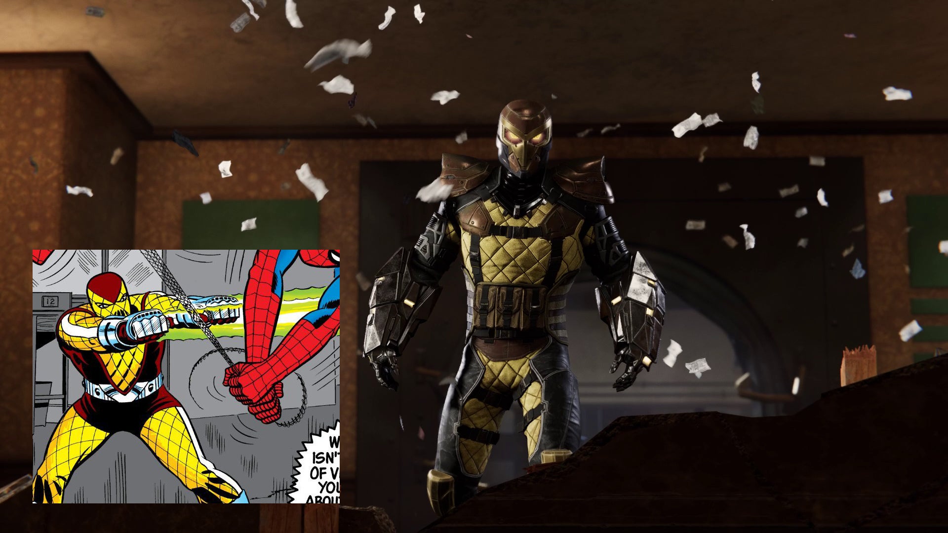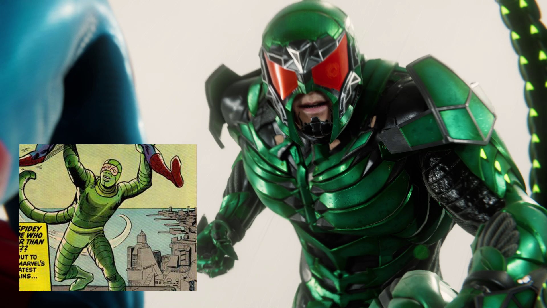 The Insomniac version retains his connection with Jameson, but it looks like his suit makes up far more of his powerset. He can also fling a powerful hallucinogenic poison from his tail, an ability not present in some versions of the character. There's no indication whether the game counterpart has abilities outside of the suit.