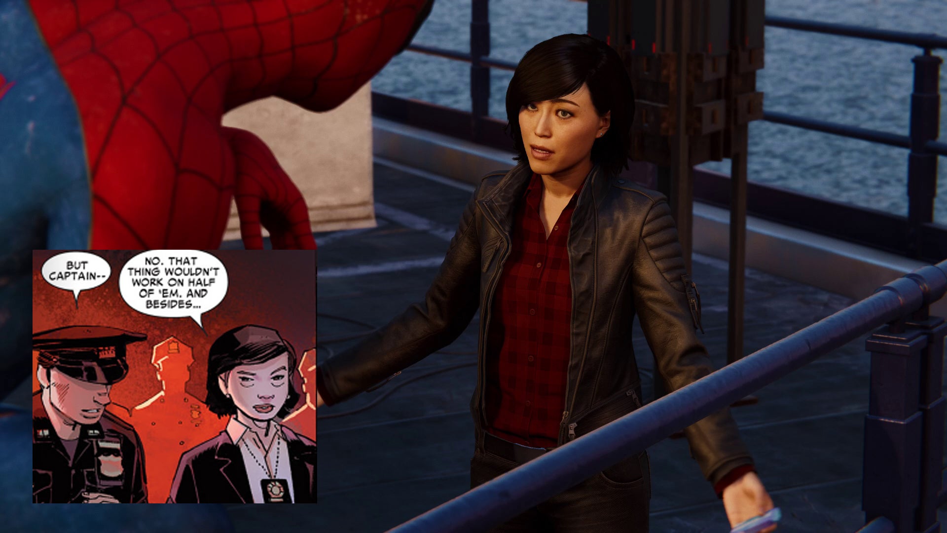 In Insomniac's Spider-Man universe, Yuri Watanabe is just a friendly police Captain trying to kick a smoking habit who works with Spider-Man. There's no indication that she'll eventually become the Wraith, as she did in the comics.