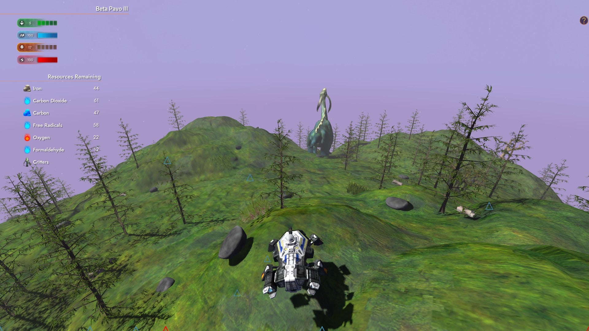 There's also the Lander sequences. Every time you reach a new planet, you scan the surface to see whether it's safe to land on. If it is, you're given a landing vector; some are straight on, some curve wildly. Your job here is to stay within the vector. If you go off target, that lander can be destroyed with all hands aboard. If you do it right, you'll land on the planet. Then it plays out like the Mako from the first Mass Effect, a weird little buggy you can wander around each planet with, collecting resources, fighting creatures, and discovering unique structures.