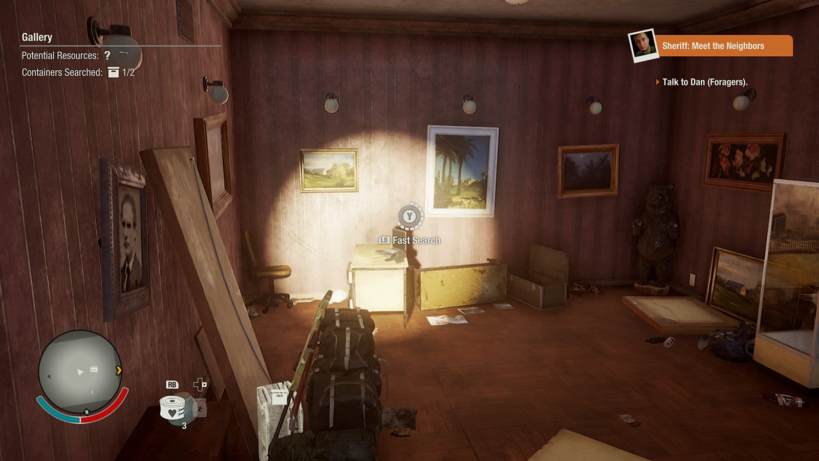 Overall, it's a game with a lot of numbers thrown at the player at all times, and initially it seems confounding. You can almost feel the math permeating at all times beneath the surfaces of randomly generated community members, other NPCs, quests, loot supply statistics, and, most importantly, your ever-growing base building. But the more I played, the easier it all became to manage. At the start I was baffled by the amount of icons, whereas hours later the moment I knew my food was running low, I put my community on rations and eyeballed the map to pinpoint unlooted places that had a possibility of turning up a much-needed food supply sack. If it was urgent, I'd make sure my community member with the highest "cardio," or stamina, was at my behest because we were guaranteed to do a whole lot of running.
