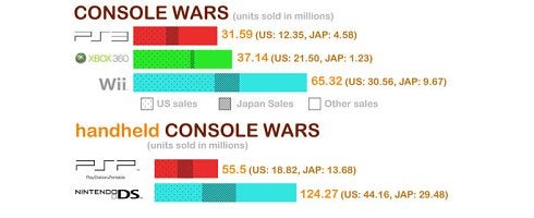 - Console sales: PS3 - 31.59M (US: 12.35M, JP 4.58M); 360 - 37.14M (US 21.50M, JN 1.23M); Wii - 65.32M (US 30.56M, JN 9.67M)
