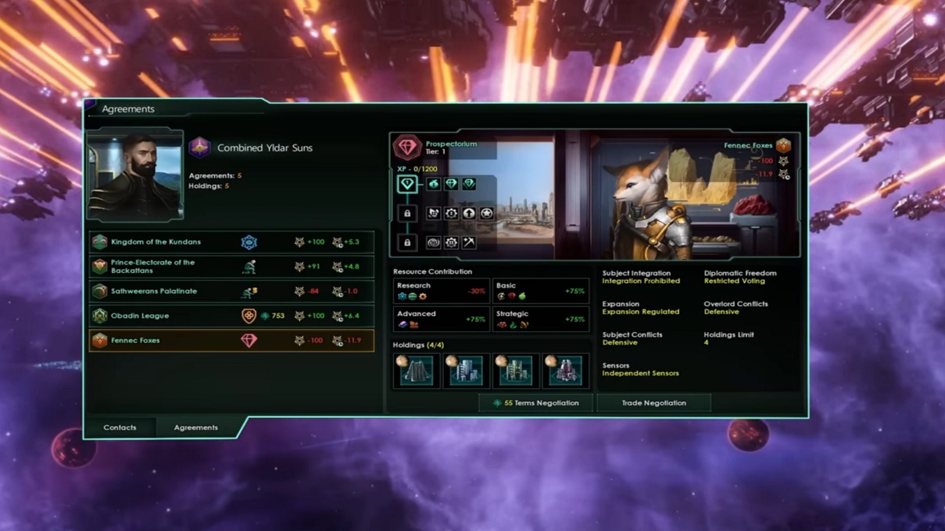 Key to the Secret Fealty feature is loyalty, the standard by which Stellaris measures your subject empire’s devotion. Loyal subjects let you exploit them in trade agreements, but take advantage of them too much, and they may start an intergalactic war.