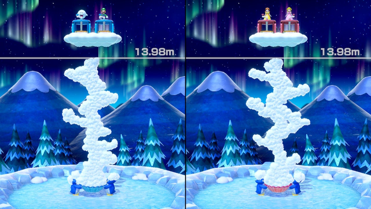 Partner Party is one of the more substantial new modes, even if it's situated on the regular mode's board game maps. In Partner Party, two teams of two have free movement around the board, but only according to the amount they roll. (The difference is board movement is no longer locked in one direction.) The team must communicate with each other and split up their goals, like one may go after the star while the other collects coins around the map. Partner Party is a decent twist on the familiar board game mode, but the traditional Party Mode is still better.