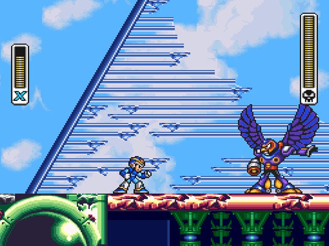 Mega Man X's foundation and mechanics are sturdier than a titanium outhouse, but its graphics and sound deserve their own accolades. The classic Mega Man series on the NES was never a slouch in the visuals department, but Mega Man X experiments with detailed backgrounds and huge bosses. Seeing Flame Mammoth's bulk tower over X is intimidating when you're used to 8-bit Robot Masters who aren't much taller than Mega Man.