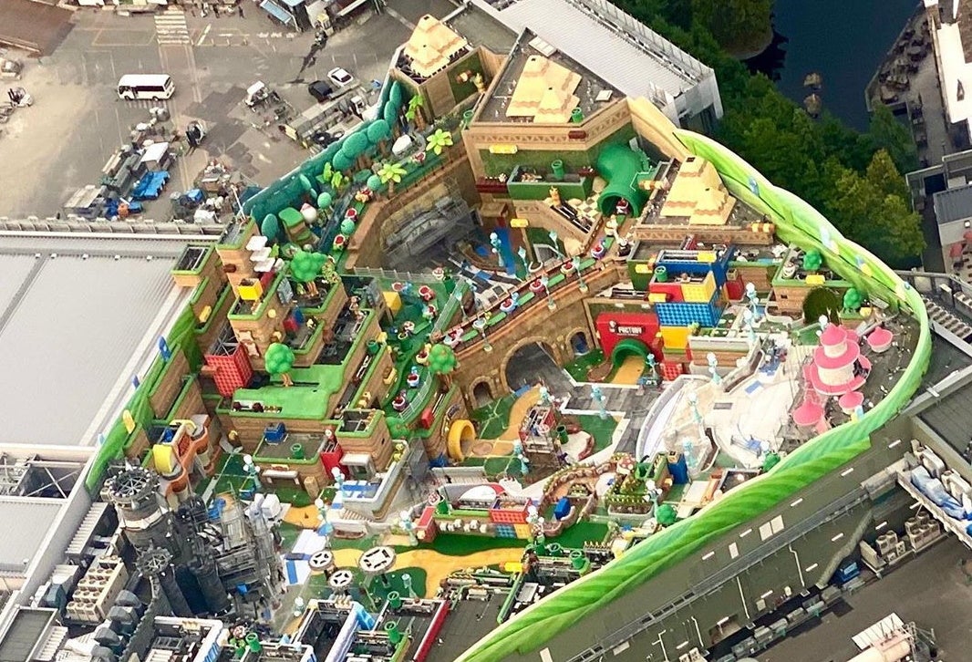 It's been a while since we've seen an update on the Super Nintendo World theme park at Universal Studios Japan. This latest news comes in the form of a couple of aerial shots that show off the entire layout at a glance.