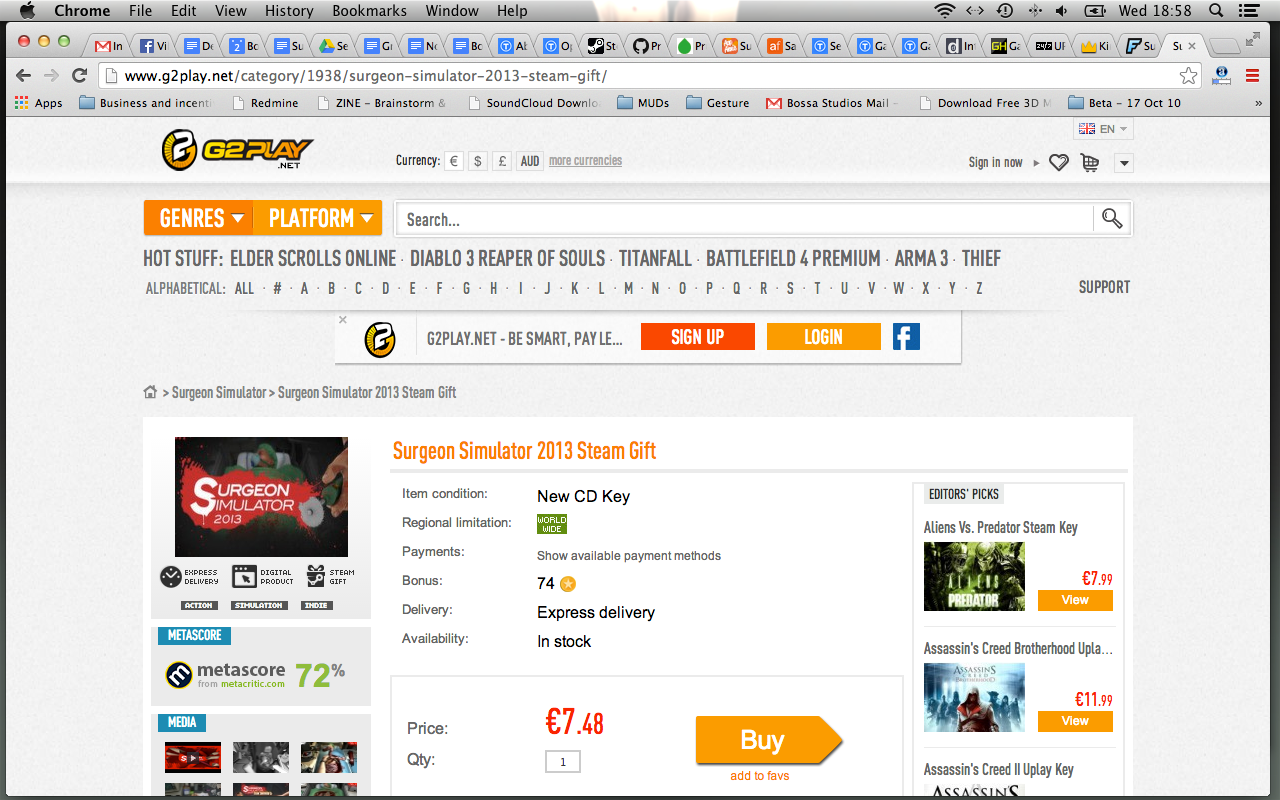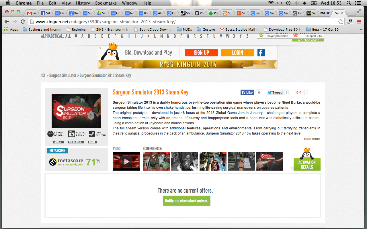 Reaching out to VG247, Olifiers sent us screen grabs of the site, stating that Surgeon Simulator 2013 keys were being re-sold without the studio's permission, and that the company is yet to hear back following formal complaints.
