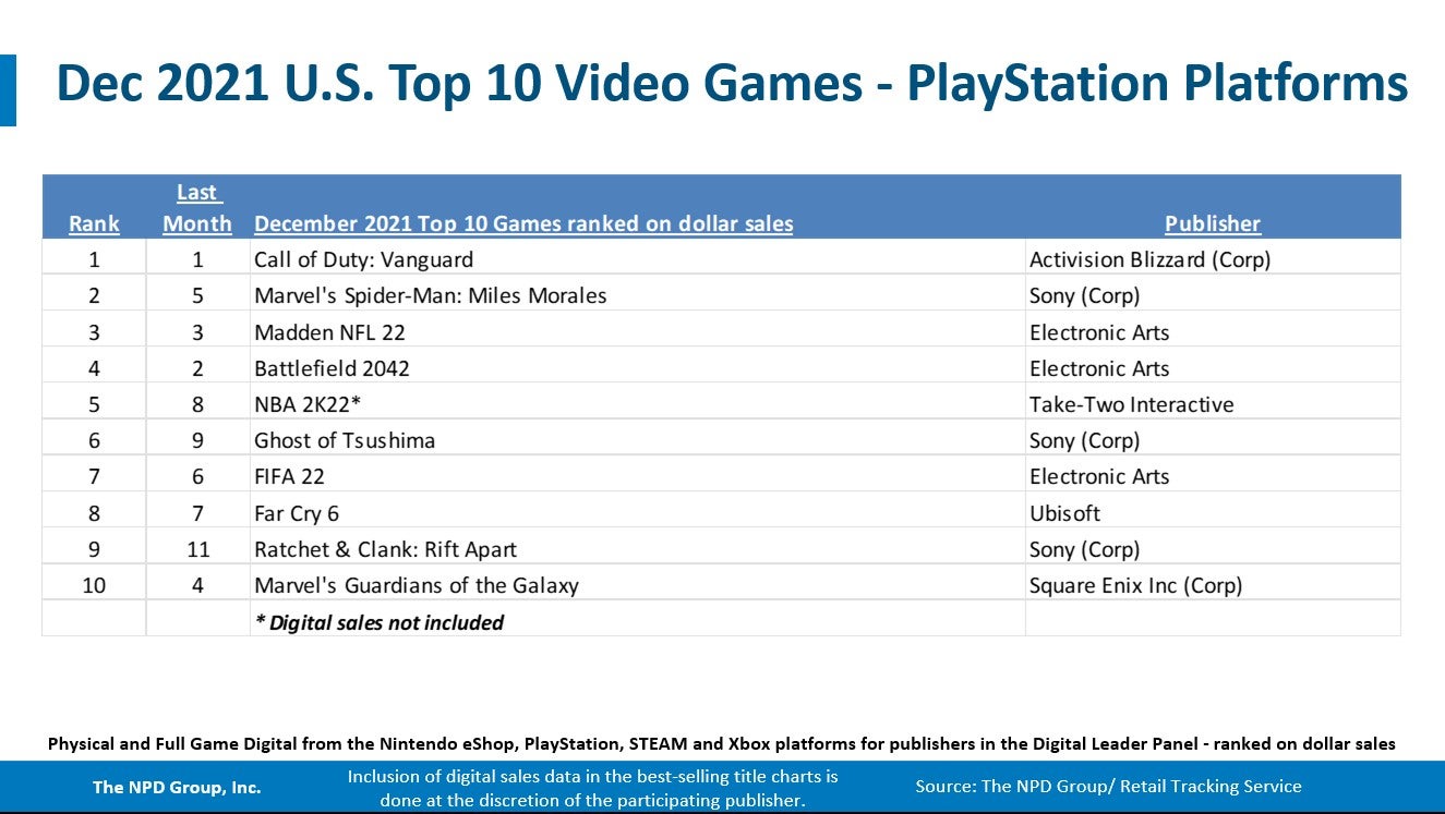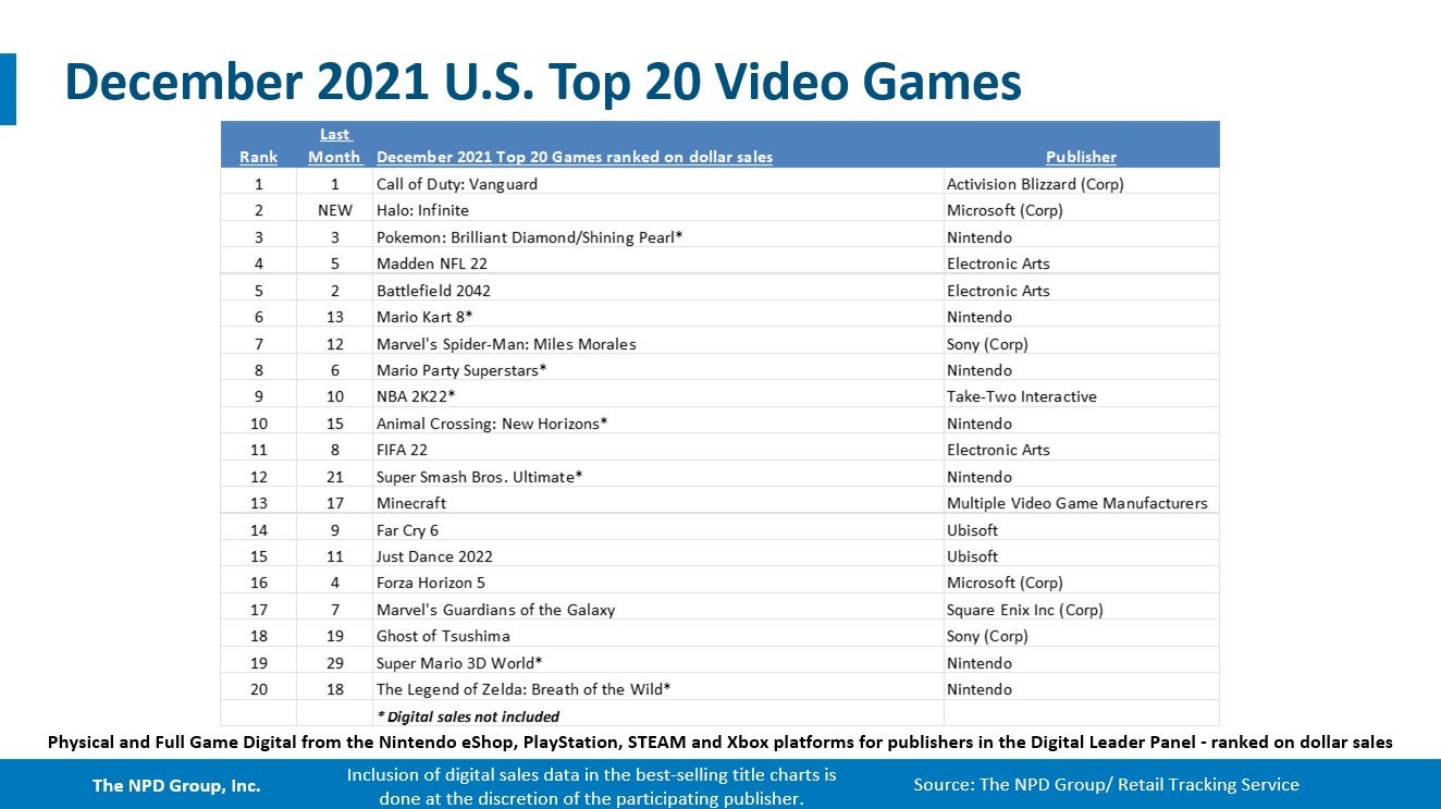 Call of Duty: Vanguard was December's best-selling game followed by Halo: Infinite which was the month's best-selling game on Xbox platforms and also lead sales of tracked titles on PC.