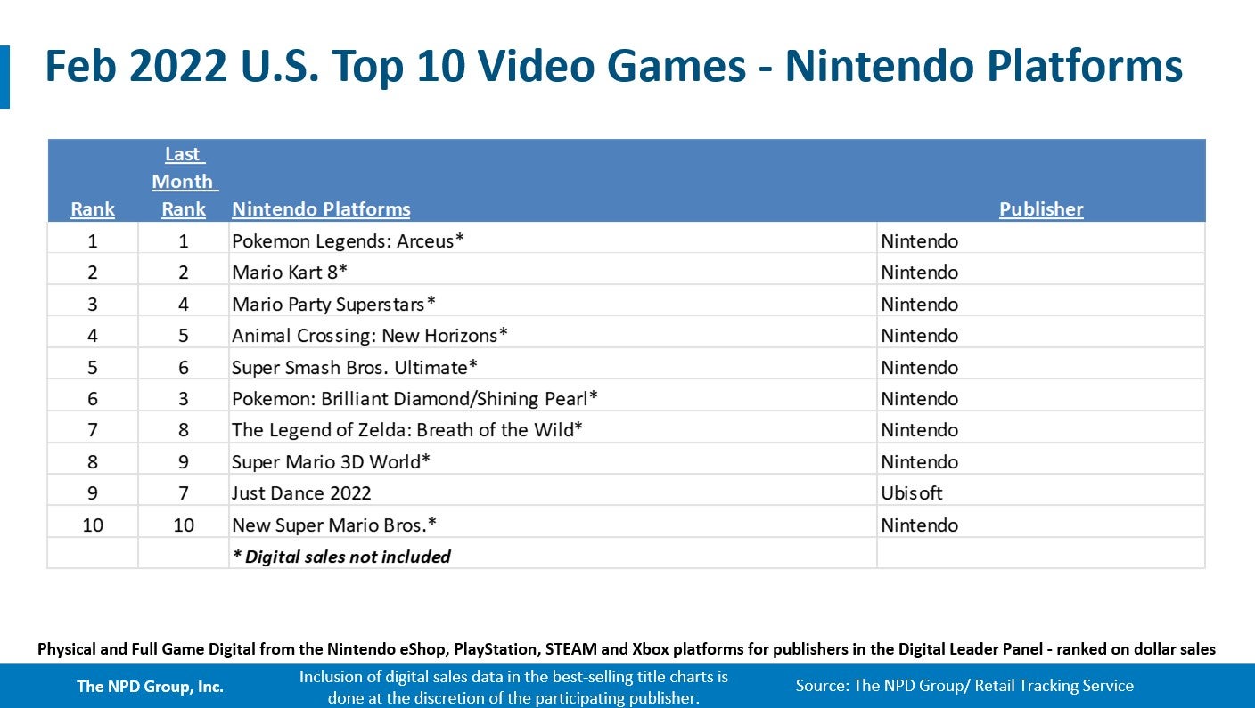 The NPD has released its February 2022 report covering video game hardware, software, and accessory sales in the US.