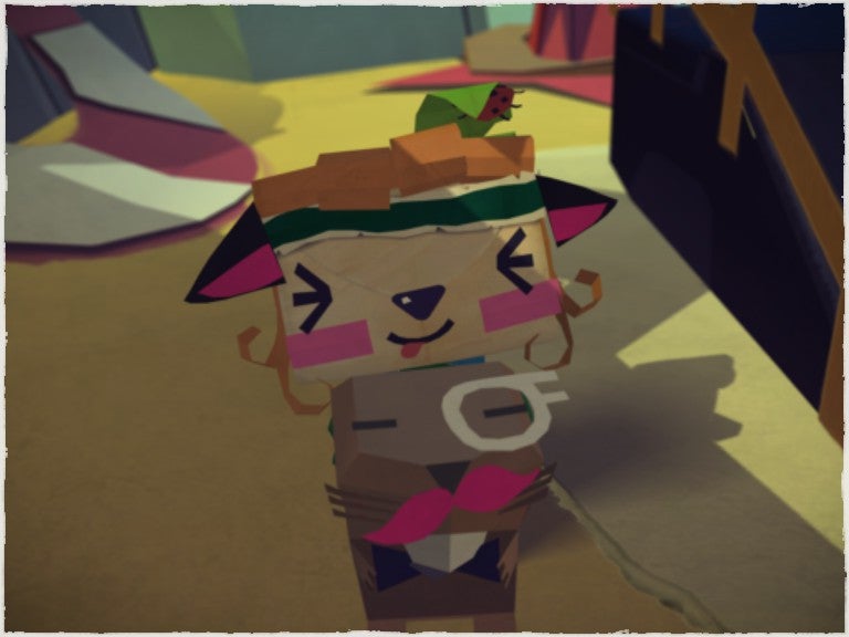 We. Not I. It still weirds me out as to how quickly Tearaway evoked an emotional rapport between Atoi and I. By the end of the game, I was actively apologizing whenever I scared my envelope-skulled girl and flinching when I made her miss a jump. I spent far too much time meticulously contriving the perfect looks for her. Those cat ears in the screenshot? Totally made by hand. Once, I even caught myself murmuring words of encouragement during a particularly difficult stretch, eager to be supportive to my partner -- a thing made of cunningly strung together bytes. Wild, huh? That's what happens. Love cultivates love and Atoi, for a carefully manufactured product of a hundred minds, is incredibly good at demonstrating affection.