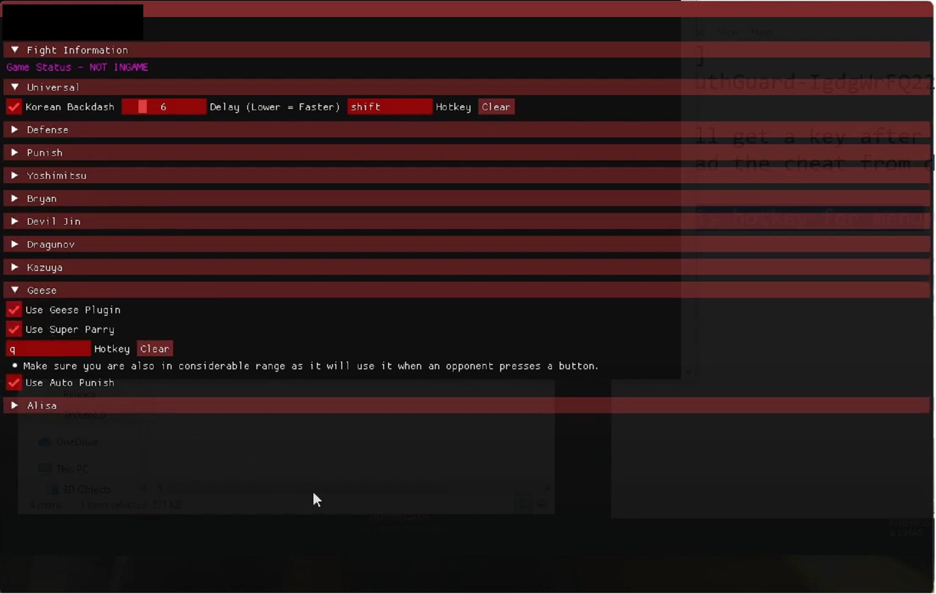 Similar software does exist in Tekken 7, allowing players to adjust settings that force your character to automatically block certain attacks, always break out of throws that would usually require hasty reaction times or some guesswork, or even automatically parry low attacks which in turn allow the cheater to follow up with a devastating combo for free.