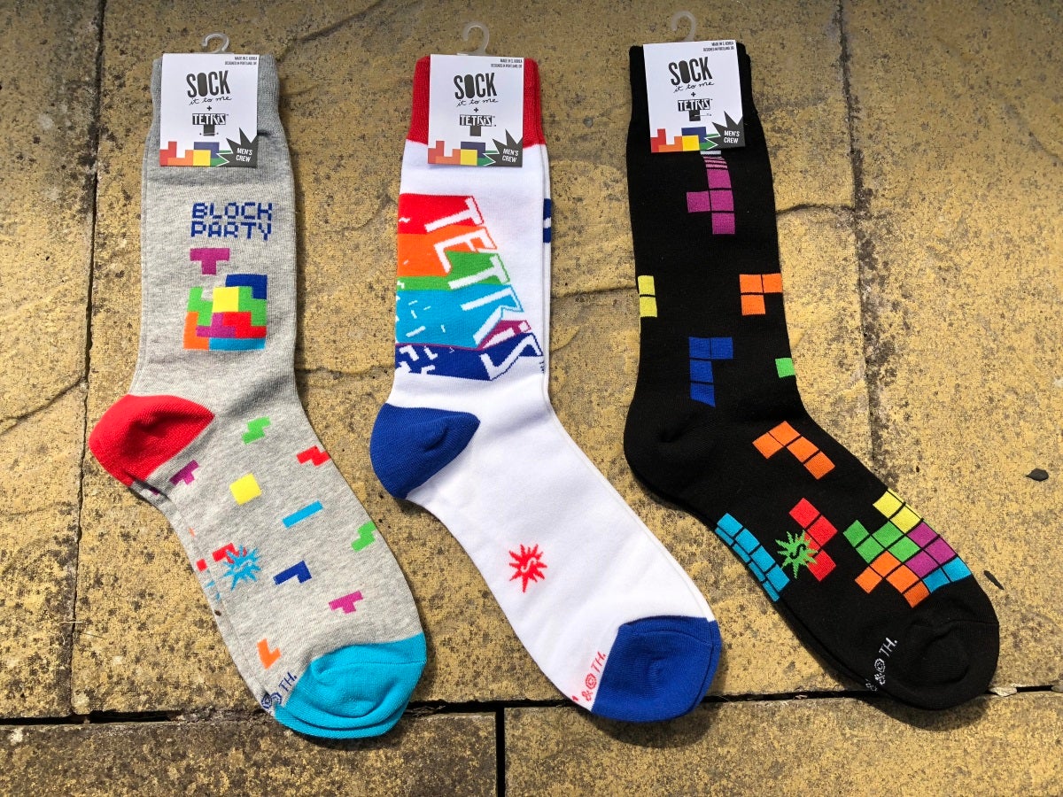 Visually, we're going straight in with the classic Tetris design, which makes them kind of cool in a retro '80s print way. I realise the danger that these could be seen as novelty - you don't want to be like Alan in accounts who wears novelty ties during holidays and still lives with his mum. But the truth is Tetris is still cool, and the simple block patterns instantly recognisable. Tetris VR and Tetris 99 have reinvigorated Russia's greatest export since Stolichnaya, and these socks are just as potent - as soon as I put them on my wife was all over me, like Zuul seeking the Keymaster.