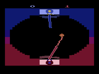 The first real example of a lightsaber video game is probably Star Wars: Jedi Arena, an Atari 2600 game built around the famous scene in which Luke Skywalker practices deflecting shots from a robotic remote. As a first effort, it's rather uninspiring. Despite the name, you never actually battle one another. Instead, you use the control paddle to block what appear to be lightning bolts from a floating ball in the middle of the screen.