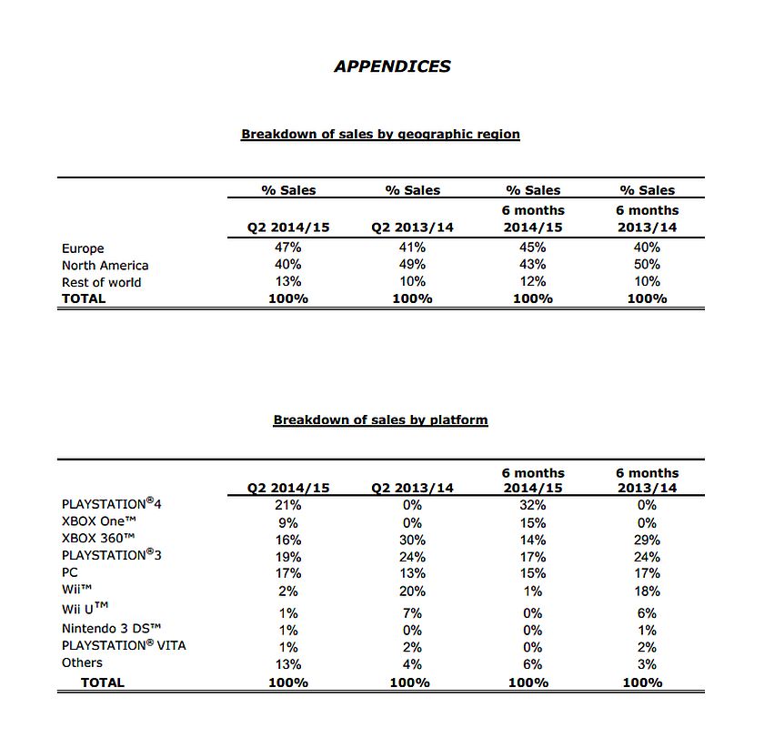 Ubisoft also provided extra color on its sales for first-half of its FY15, and you have a look at those below.