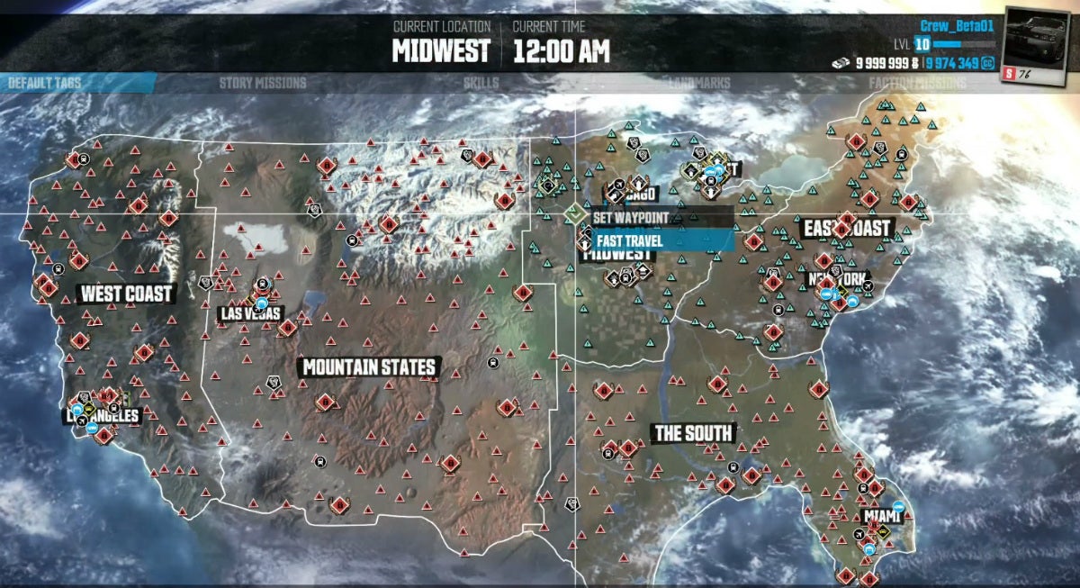 The Crew is Ubisoft's design philosophy applied to a racing MMO. Head to an area, access a specific point, and unlock other events and collectibles in that area. In The Crew's case, this means racing events, takedown events, landmarks, and other skills challenges. Finish stuff and you get experience and gear on your current spec.