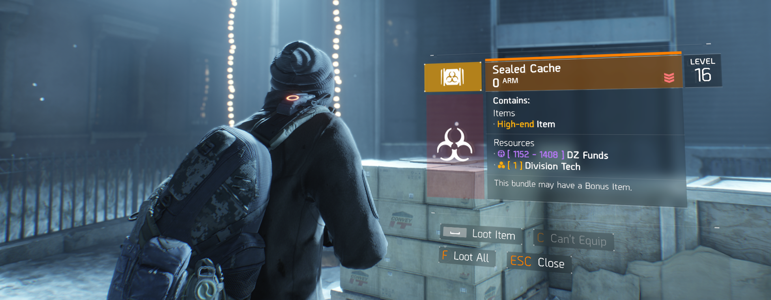 Items will represent a variety of offerings ranging from Dark Zone credits, to Specialized, Superior, High-End and Gear Sets. The quality of the loot will also reflect the difficulty of the NPC which dropped it. Quality is also indicated on the range of crafting materials and Dark Zone credits displayed in the UI.