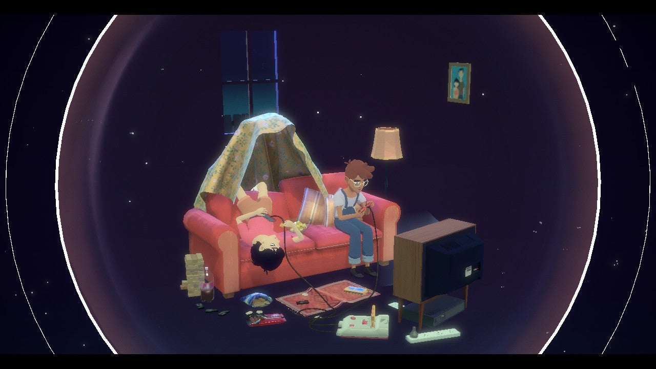 At the start of The Gardens Between, puzzles are relatively simple, easing you into what will only grow more complicated later. The little dioramas change as you walk through it. Sometimes one of your characters will loiter around an area, perhaps admiring a sight or pointing at something that you'll want to remember later on. You never have direct control over the characters, only over the passage of time. And it's fitting, considering you're wading through the memories of two best friends, which amount to familiar-feeling sequences of playing games late at night or visiting a museum.