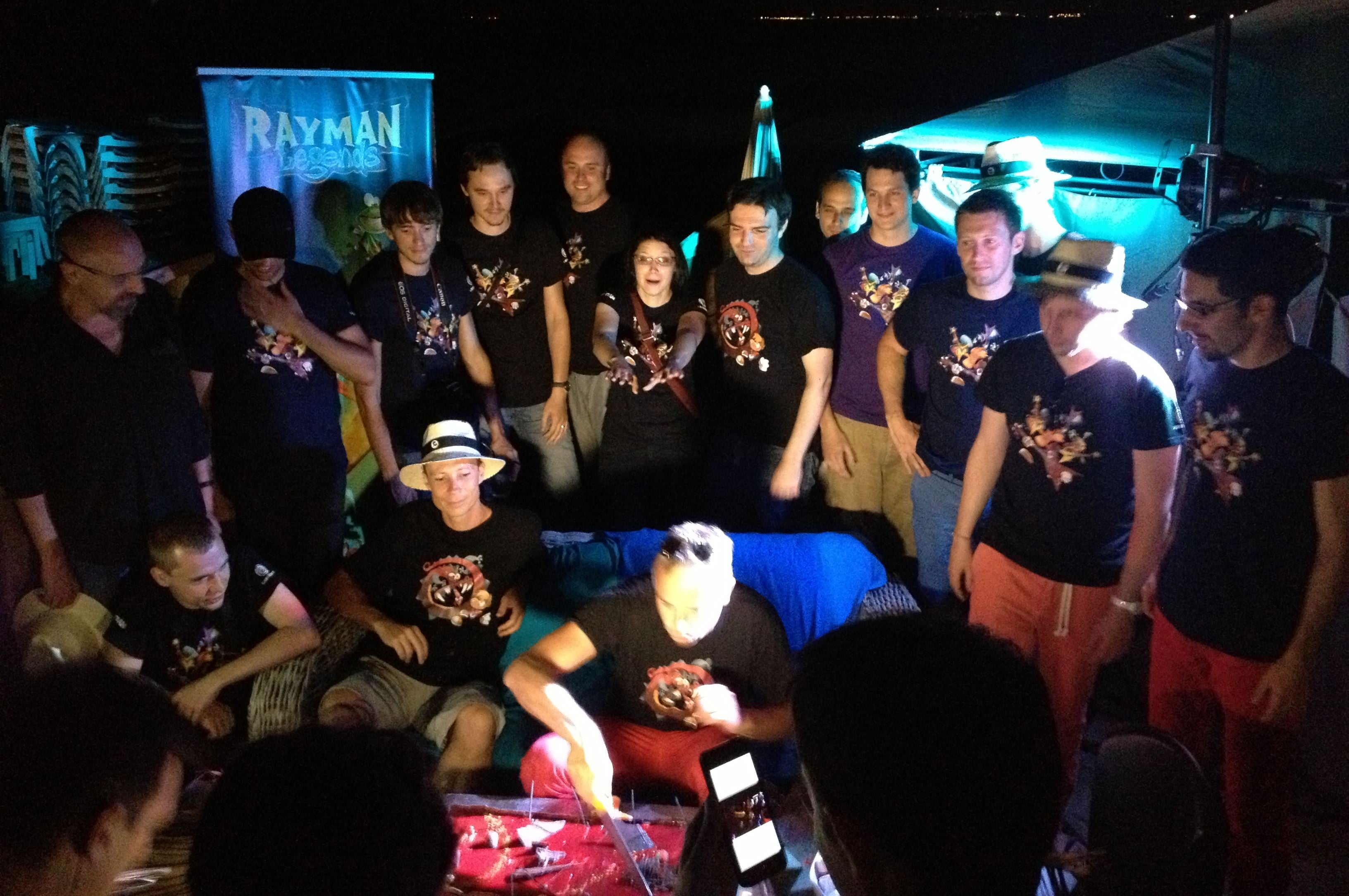 Michel Ancel is supposed to be talking to me about the finally-complete Rayman Legends, but he's gotten a little distracted. We're at a beachfront bar in Montpellier, just down the road from his studio, for an odd mix of press junket and wrap party, and Ancel is being cheered on by a crowd of workmates who've turned up for the occasion.