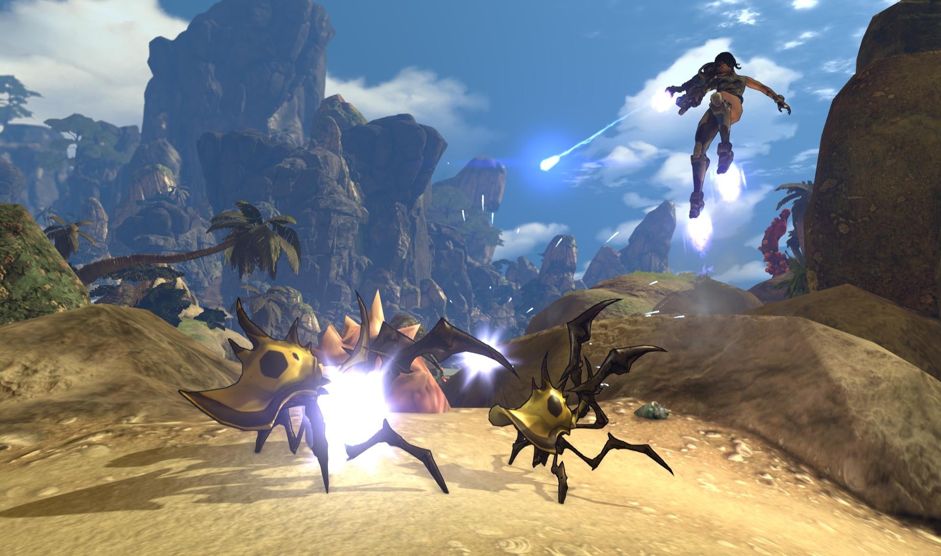 Certainly, the game currently does a poor job of selling its bewildering crafting options as something worthwhile. Sending people zooming out into the world on rocket boots, blasting bugs and space-tigers with their chain gun, and then expecting them to come back and slog through a series of lumpen menus, at terminals located in multiple locations, seems like a big ask. The gear change between the two games being attempted here is sometimes just too jarring.