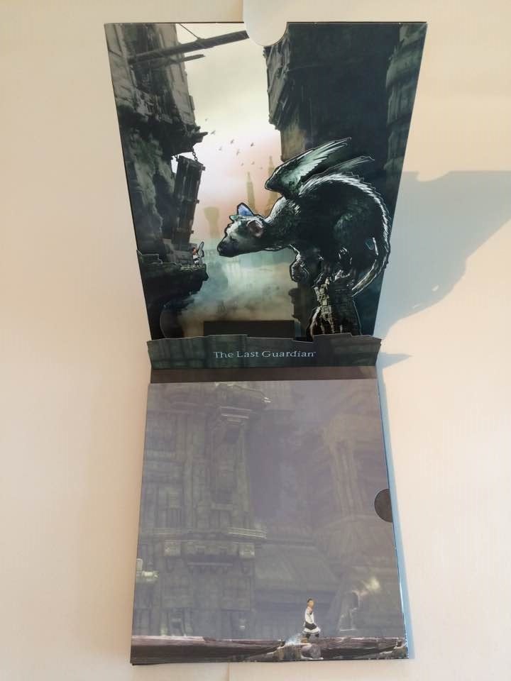Sony always goes to great lengths with its press packs for first-party exclusives, and The Last Guardian is no exception. Here we can show you the packaging in detail, which begins with an outer sleeve silhouette of a boy and his Trico, over an embossed folder.