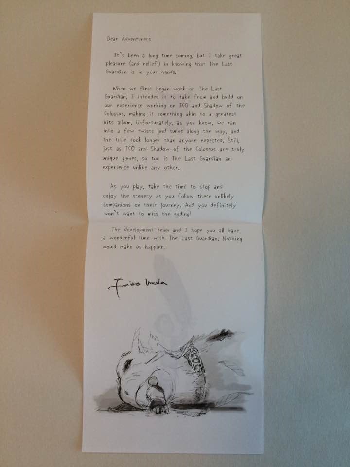 The Last Guardian is real. I have it in my hands, along with a note from Fumita Ueda.