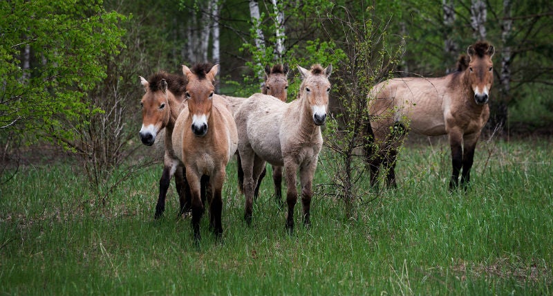 The immediate effect of the meltdown was devastating for surrounding flora, fauna, and humans. The forest surrounding the power plant turned red and skeletal after absorbing lethal amounts of radiation. But it's been 31 years since the disaster, and wildlife is abundant in the Exclusion Zone even though parts of the area are still highly irradiated. Wolves, wild horses, and other animals that were scarce or extinct in the Ukraine thrive in and around Chernobyl's ruins.