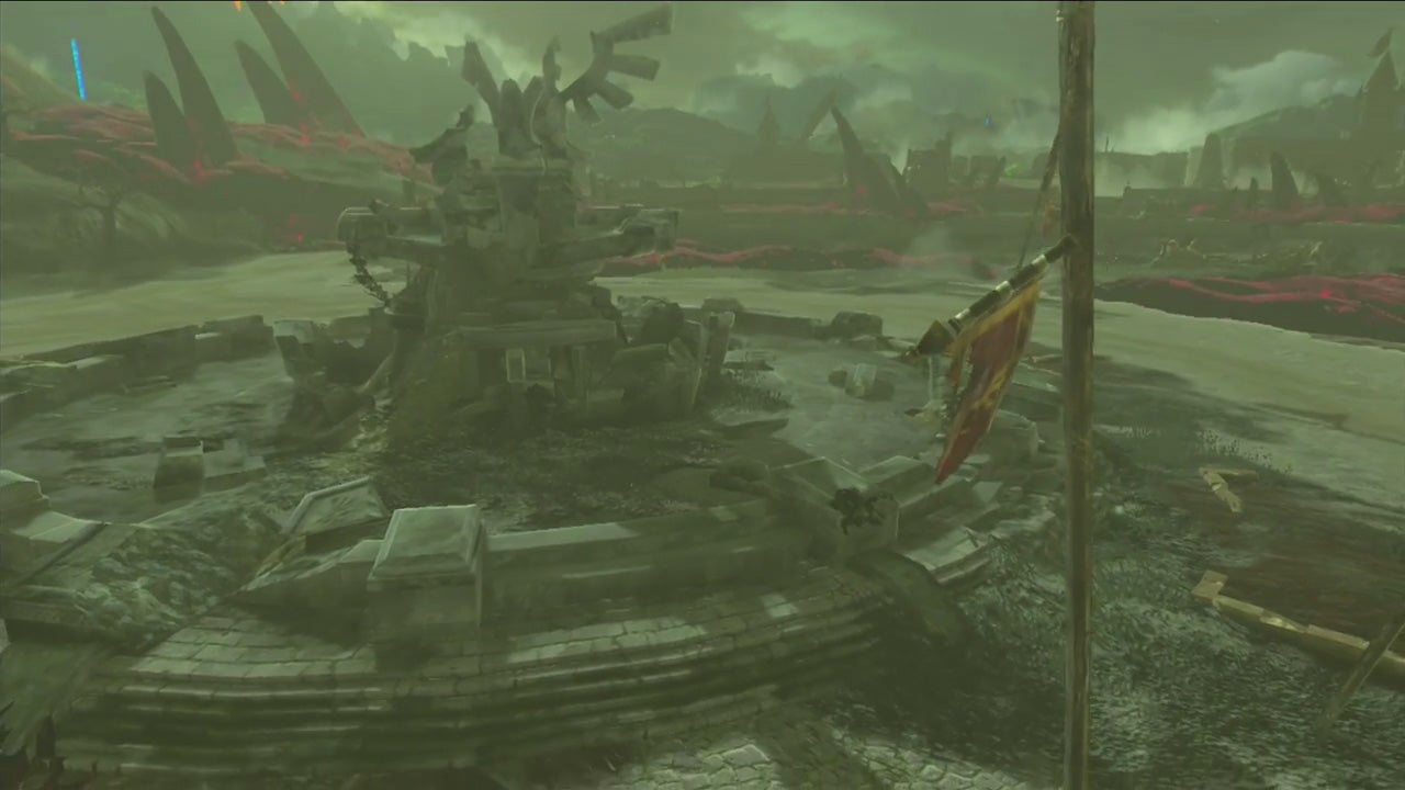 Interestingly, Breath of the Wild does have a magic-based analogy to nuclear fallout: The pulsating purple-black sludge called "Ganon's malice." If Link gets too close to this nastiness, he loses life energy in a hurry. The malice is abundant at ground zero of Ganon's failed invasion attempt, namely Hyrule Castle. The area is bleak and scarred, a real contrast to the rest of the realm's overgrow wildlands. If Breath of the Wild has an area that does echo the media stereotype of a hopeless post-apocalyptic wasteland where nothing can grow, the remnants of Hyrule Castle Town is it.