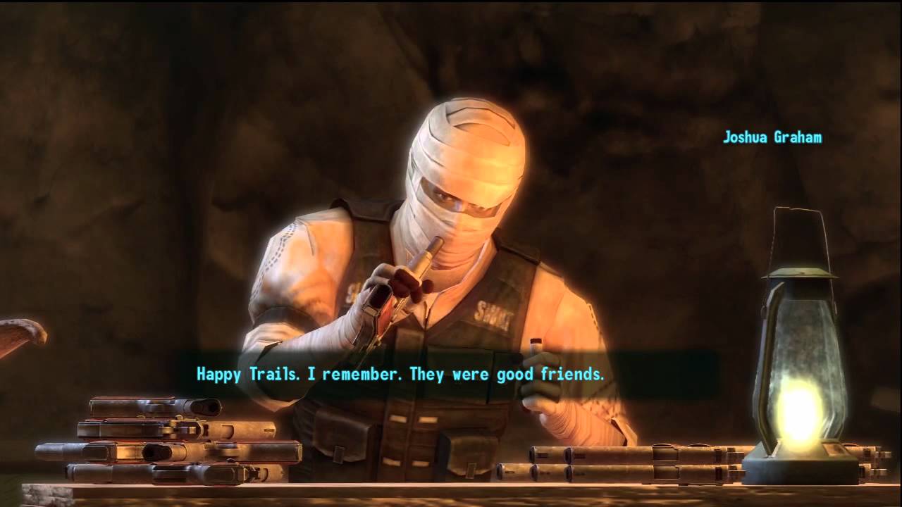 Honest Hearts was a comparatively simple and straightforward quest, but Sawyer wanted to use it to delve into a number of themes, particularly religion. It begins with meeting Joshua Graham: the famed "Burned Man" who is alluded to but never seen in the main quest.