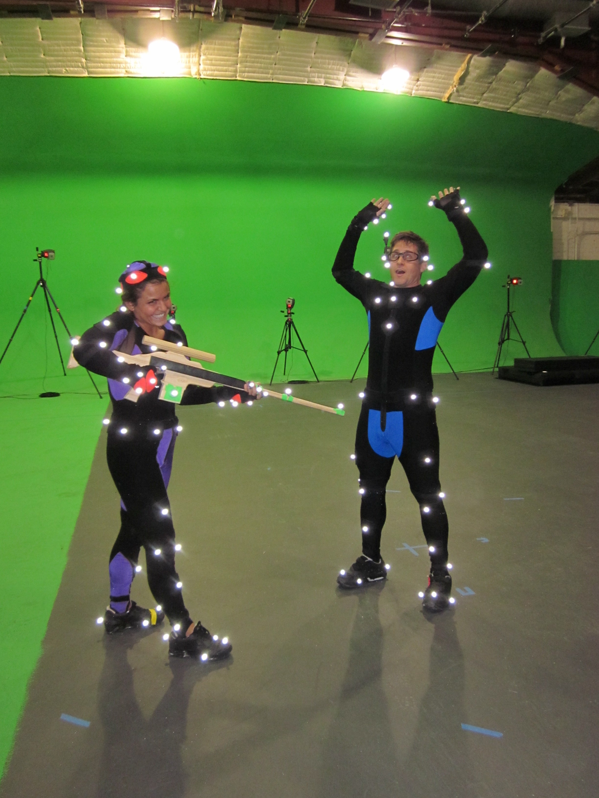 Even if Yuri does have a one-line role, as in Shadow of The Damned, there's still work to be done outside of the dialogue. The various grunts and screams of being hit and killed must also be recorded. When he played a soldier in Peace Walker, the voice actors watched a screen with a live feed from Japan on it. On the screen were the stuntmen, and Lowenthal had to grunt and yell, as guys in wetsuits with ping pong balls attached threw themselves around an empty room.