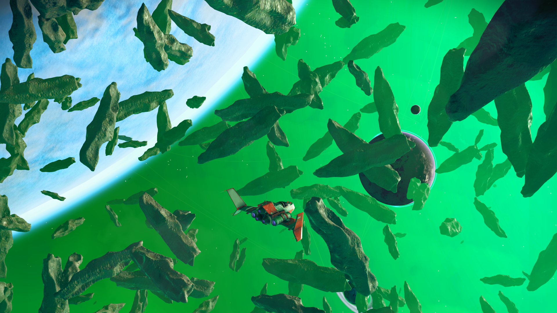 But as Edge demonstrates with this photo, blasting off to a warmer clime is just a matter of navigating through some asteroids.
