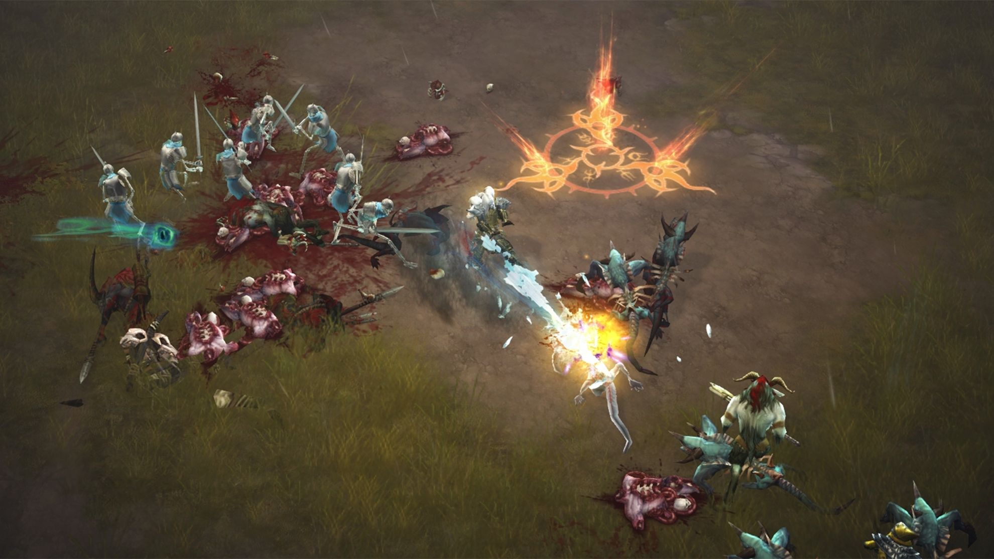 Along making corpses explode, the class will also make use of the following abilities: Bone Spear, Siphon Blood, Blood Rush and Summon Skeletons. A full set of legendaries and set items are planned for the Necromancer, including the class-specific scythe as their main.