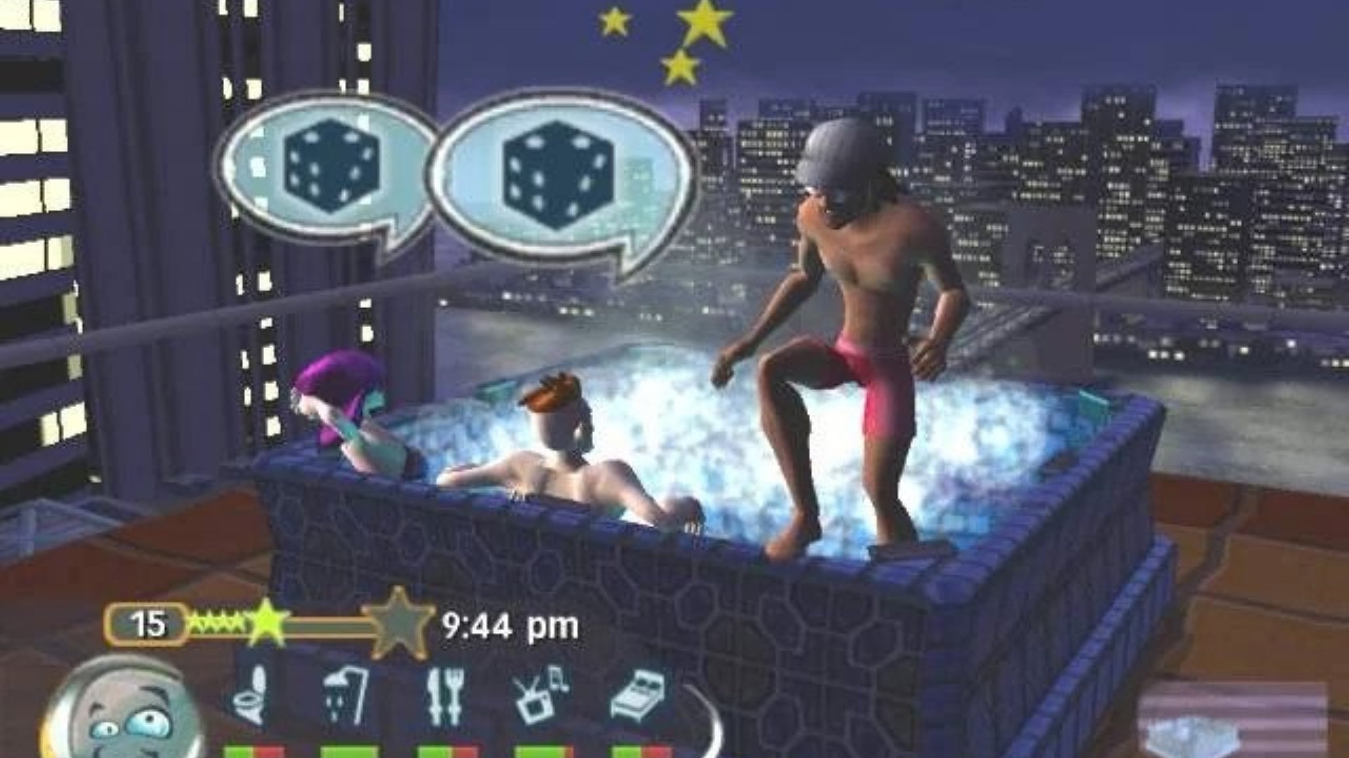 Anyway, what happens in the console version of The Urbz is that The Black Eyed Peas come along and kindly help you gain entry to a club. You’re new to Simcity, having just fled the nest, and the club decided they didn’t like your dance moves. But that doesn’t matter, because The Black Eyed Peas are here. After that, you basically befriend the most popular person in town, Darius, and beat up some bad guys. The rest is history.