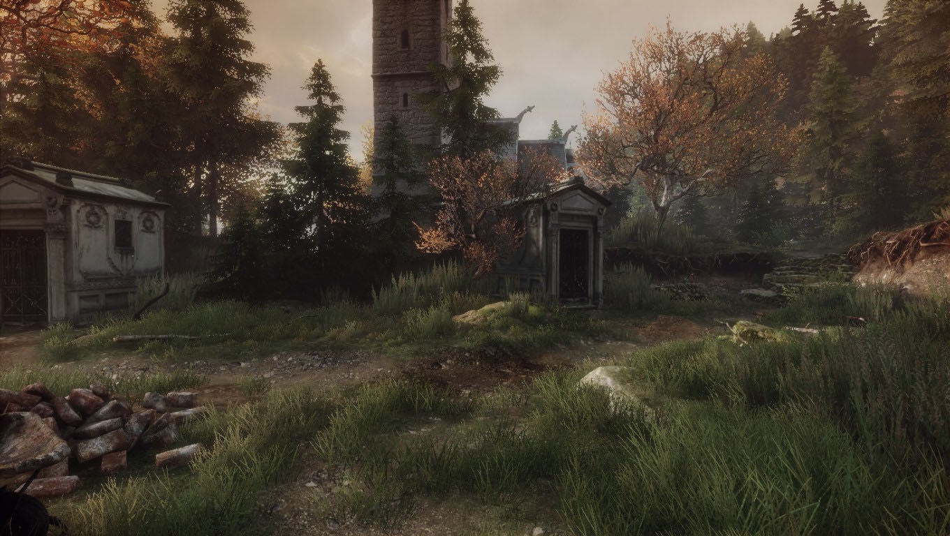 Developer The Astronauts may take a hands-off approach to player guidance, but the world they've created never feels intimidatingly huge. And that's mostly because it's so fun to explore. Looking back at my journey, The Vanishing managed to covertly steer me towards its final destination, though I didn't mind the few times Red Creek Valley had me absolutely lost. Simply put, it's an amazing setting to just exist in, so even wandering aimlessly has its rewards. The Vanishing's sublime visuals—which have to be seen in motion to be believed—work together with its emotionally intense soundtrack to expertly craft the atmosphere of any given area. Though music plays perpetually throughout, it never feels overbearing, and, at times, it seems to react dynamically as you work your way through different locations, giving the various parts of Red Creek Valley their own unique texture.